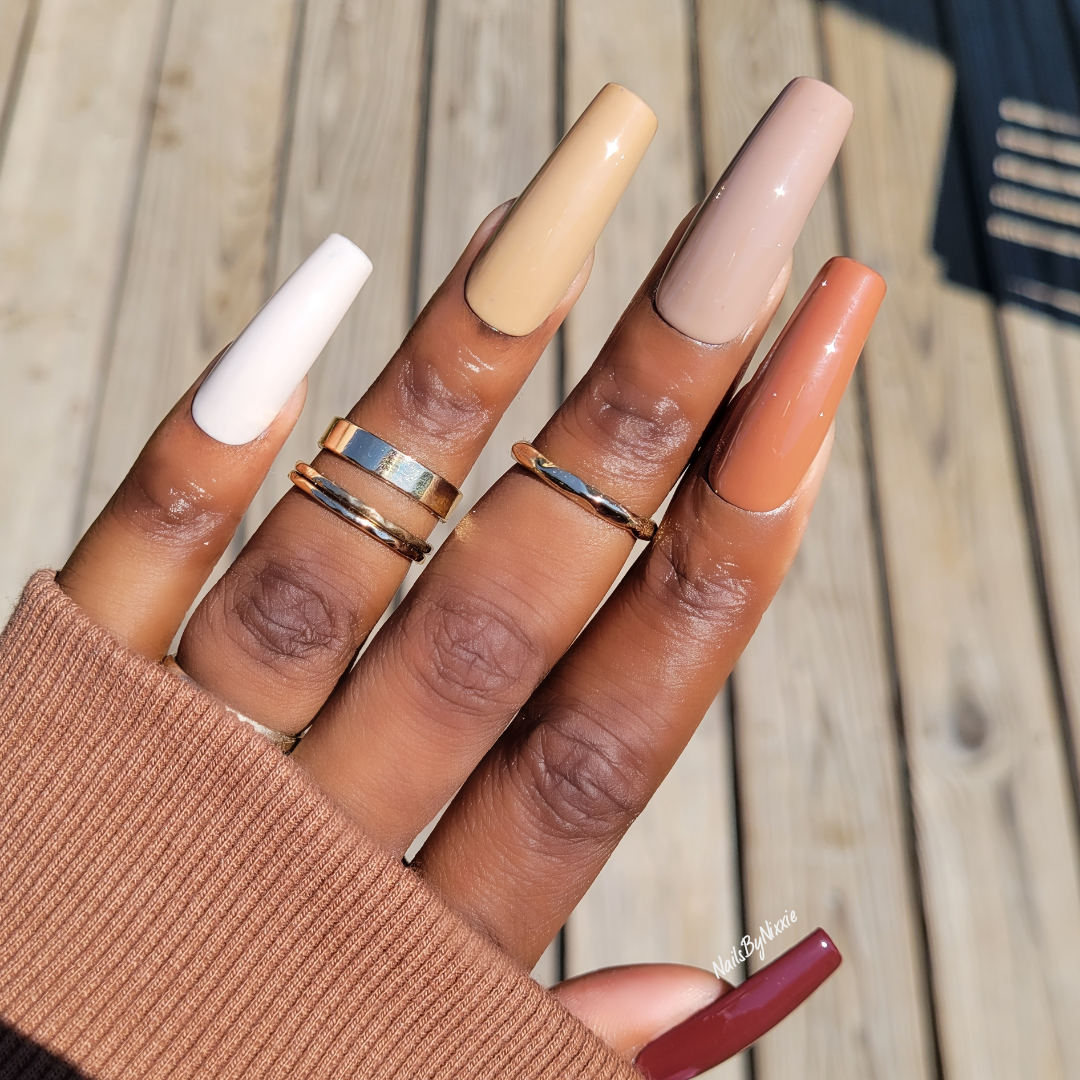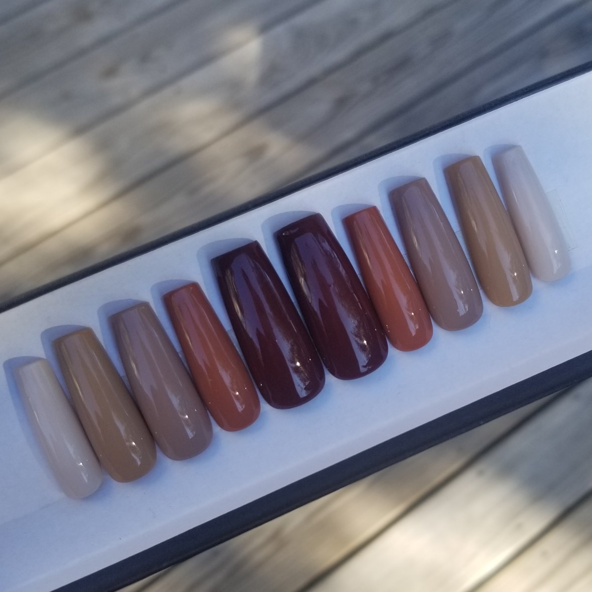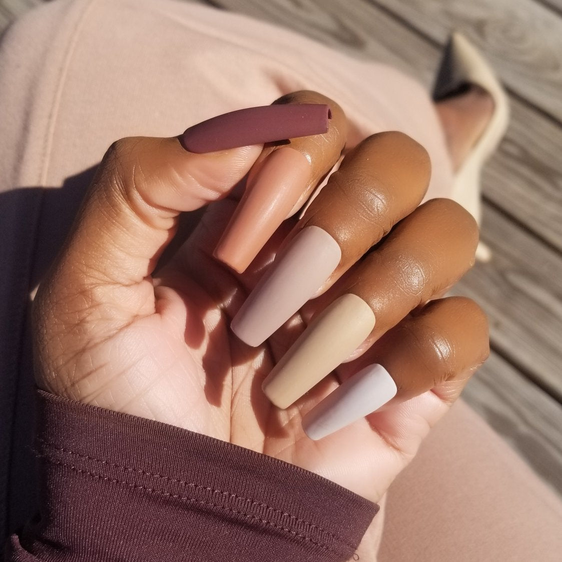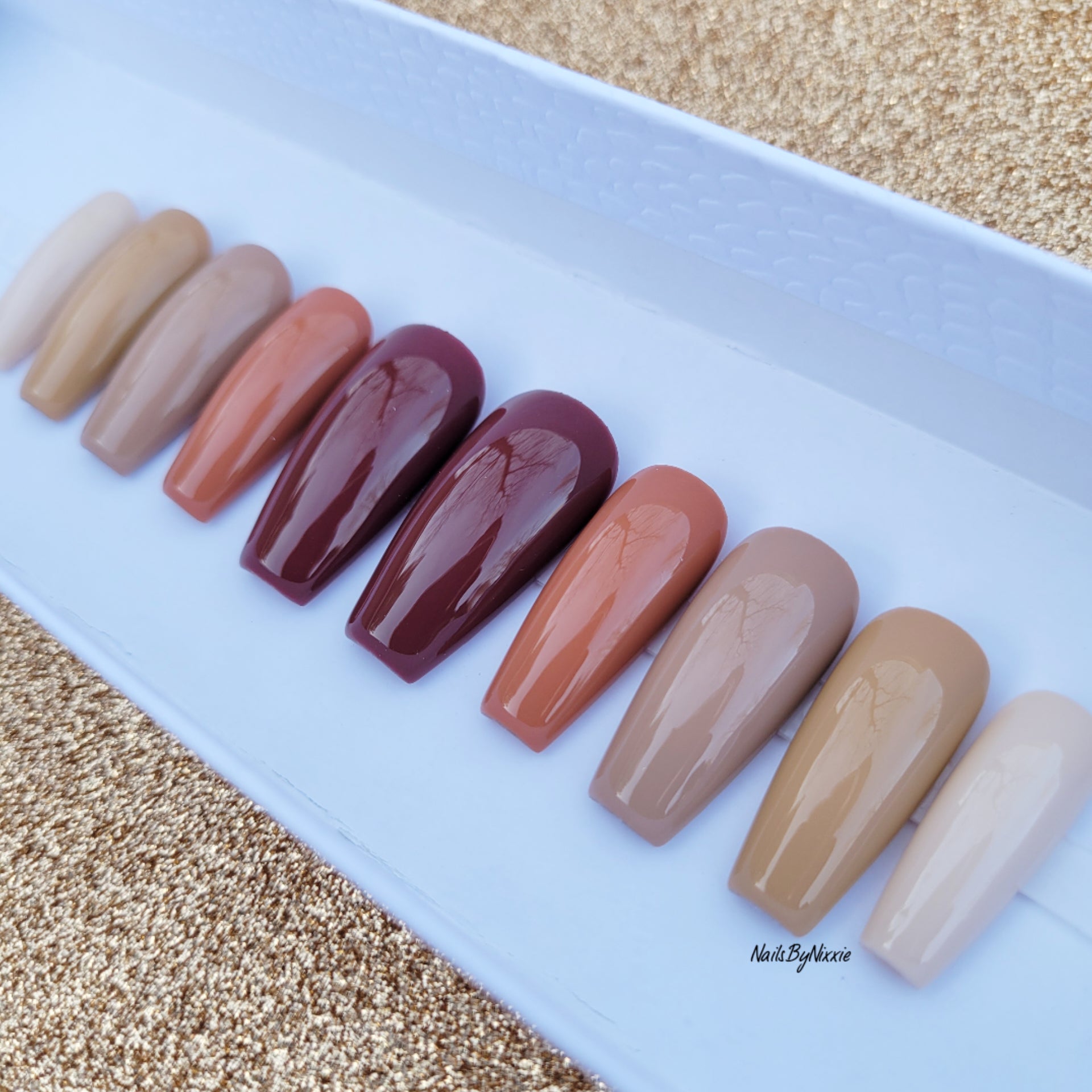 A selection of nudes. Have your nails done with this design in under 10 minutes with our long lasting, gel, press on nails. Choose your favorite length, shape and size and add this made to order nail set to cart!