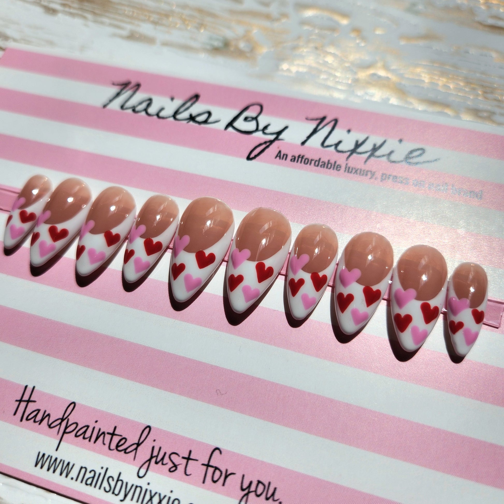 All of our nail sets are hand painted and we use super high quality Gel-X nail tips for salon style shape and durability. In addition to this, each nail set is made with 4-6 coats of UV cured gel polish, so our press ons are thicker and more durable. To add additional thickness and strength to your nail set, you can add builder gel to your order. Builder gel, is a hard gel which provides an acrylic-like strength.