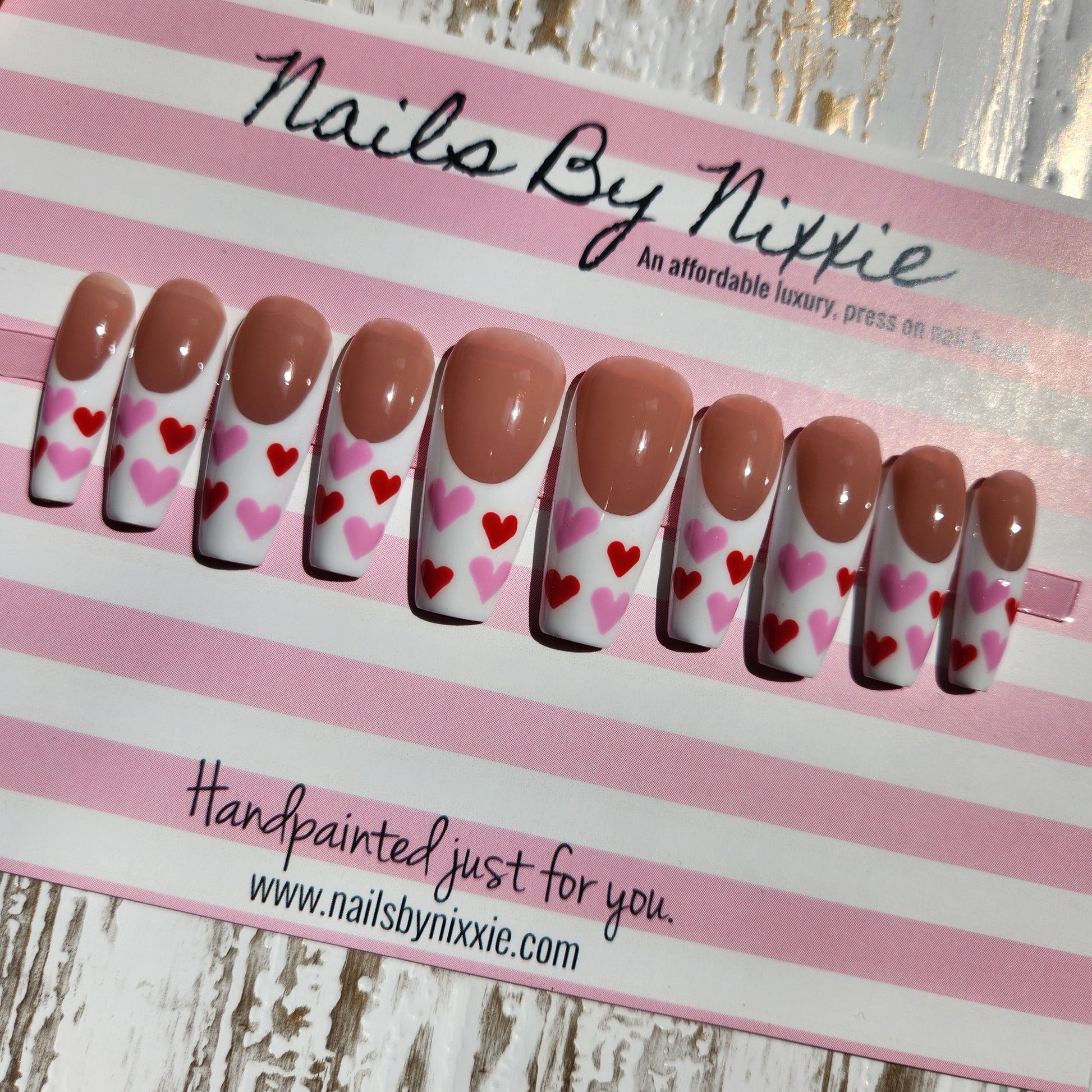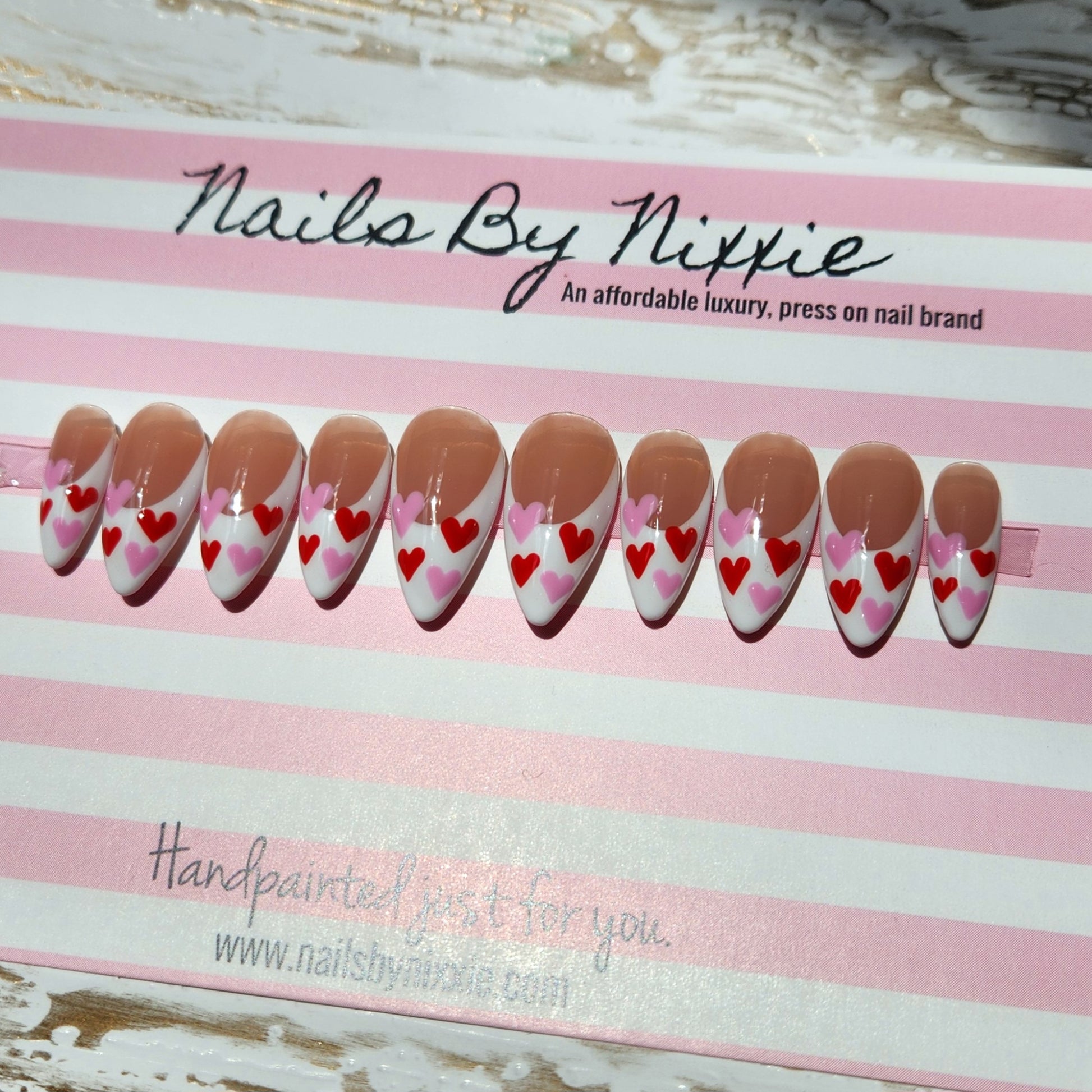Have your nails done in this design in under 10 minutes with our long lasting, gel, press on nails. Choose your favorite length, shape and size and add this made to order nail set to cart!