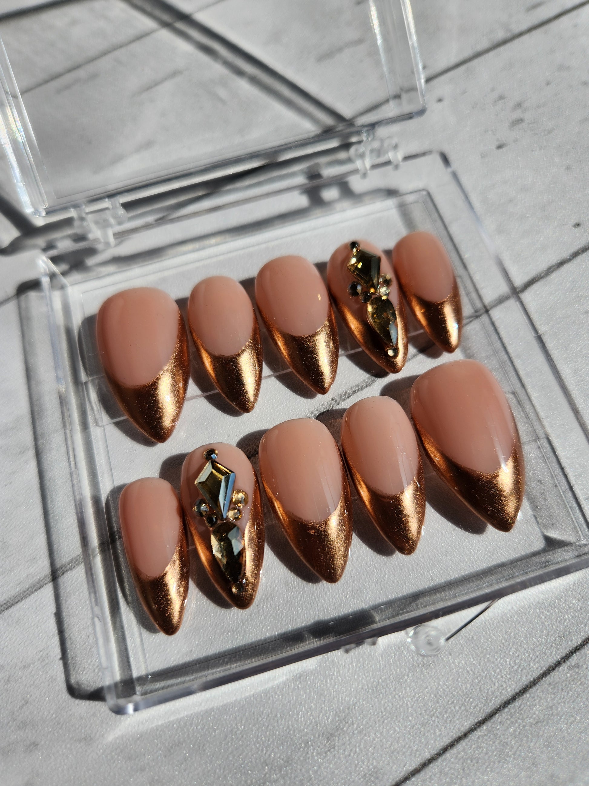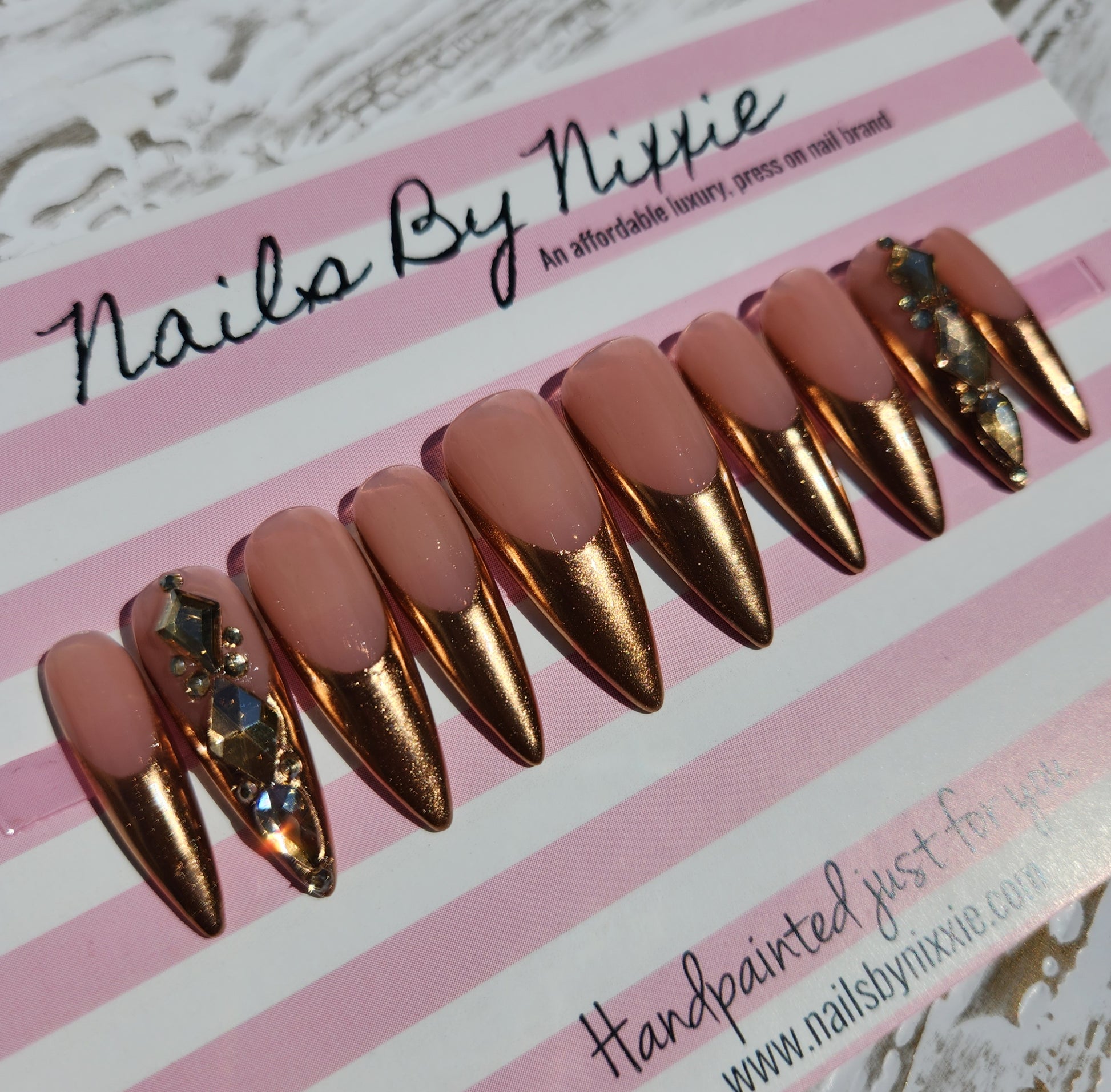 Gold chrome french tip press on nail set.
