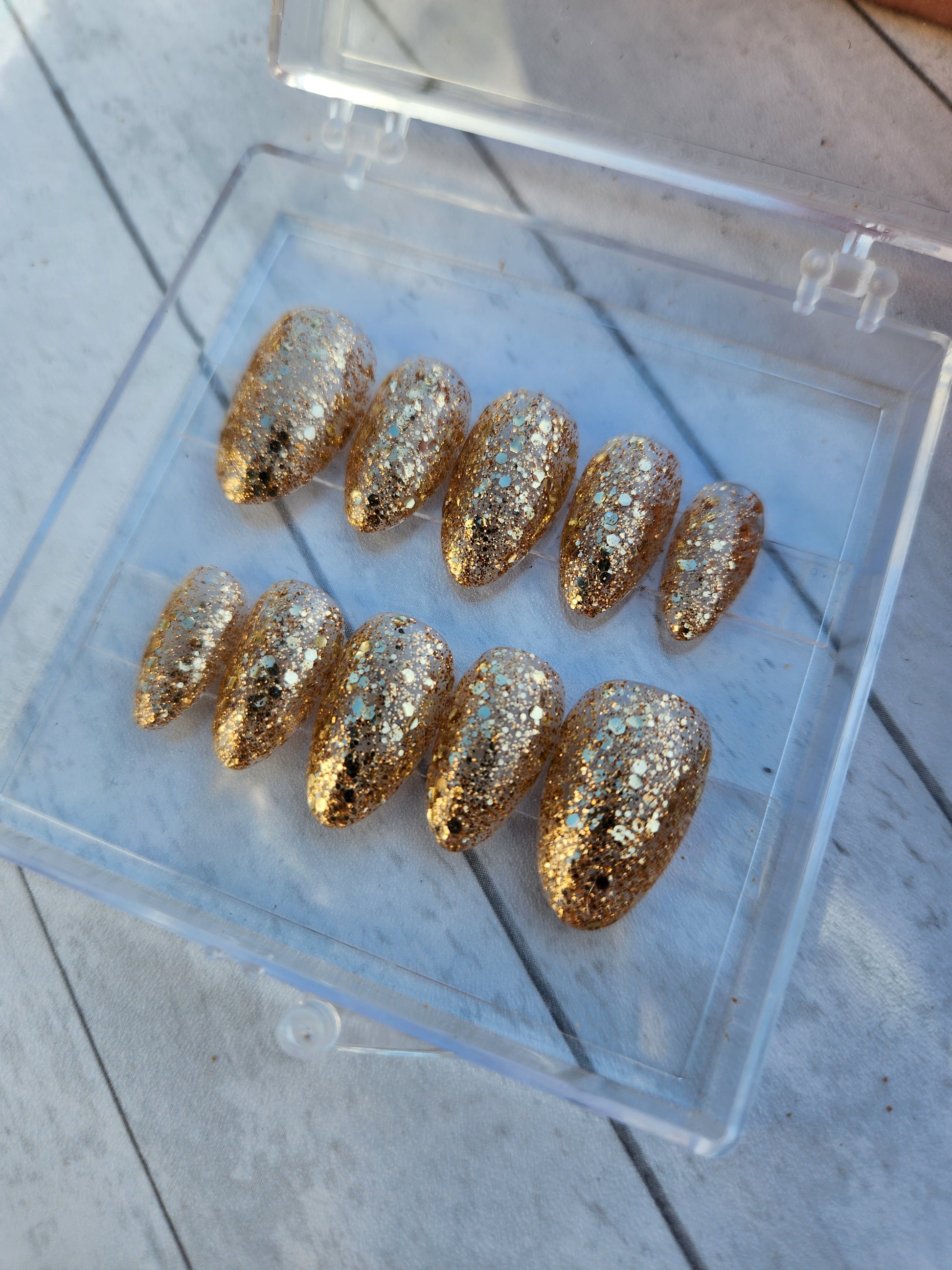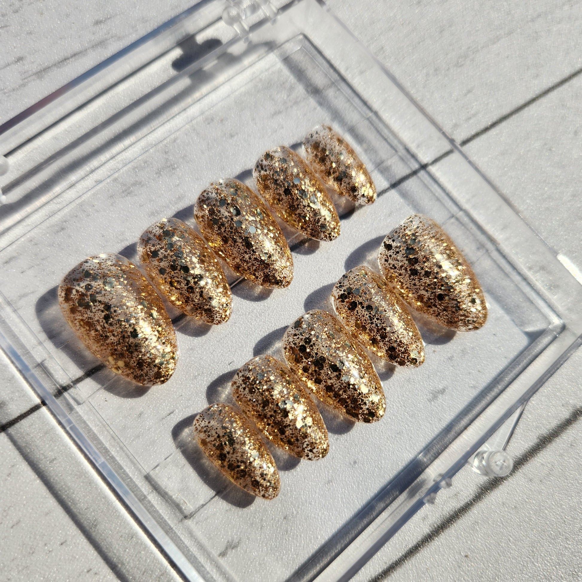 Have your nails done in this design in under 10 minutes with our long lasting, gel, press on nails. Choose your favorite length, shape and size and add this made to order nail set to cart!