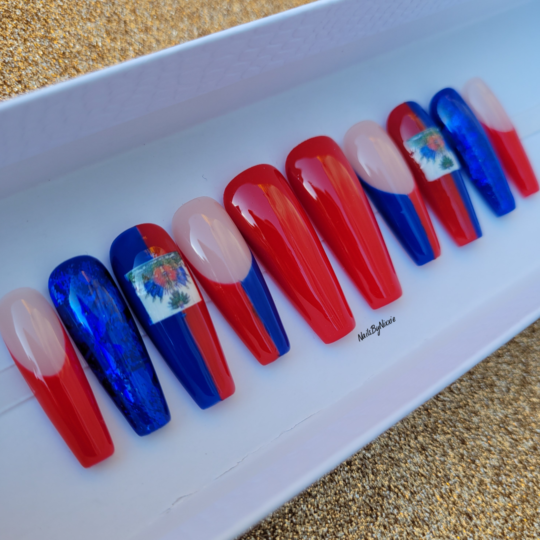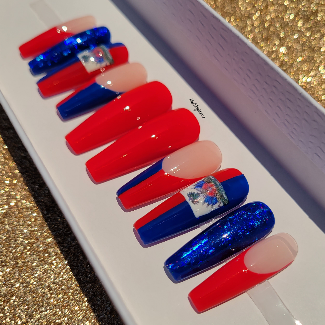 Have your nails done in this design in under 10 minutes with our long lasting, gel, press on nails. Choose your favorite length, shape and size and add this made to order nail set to cart!