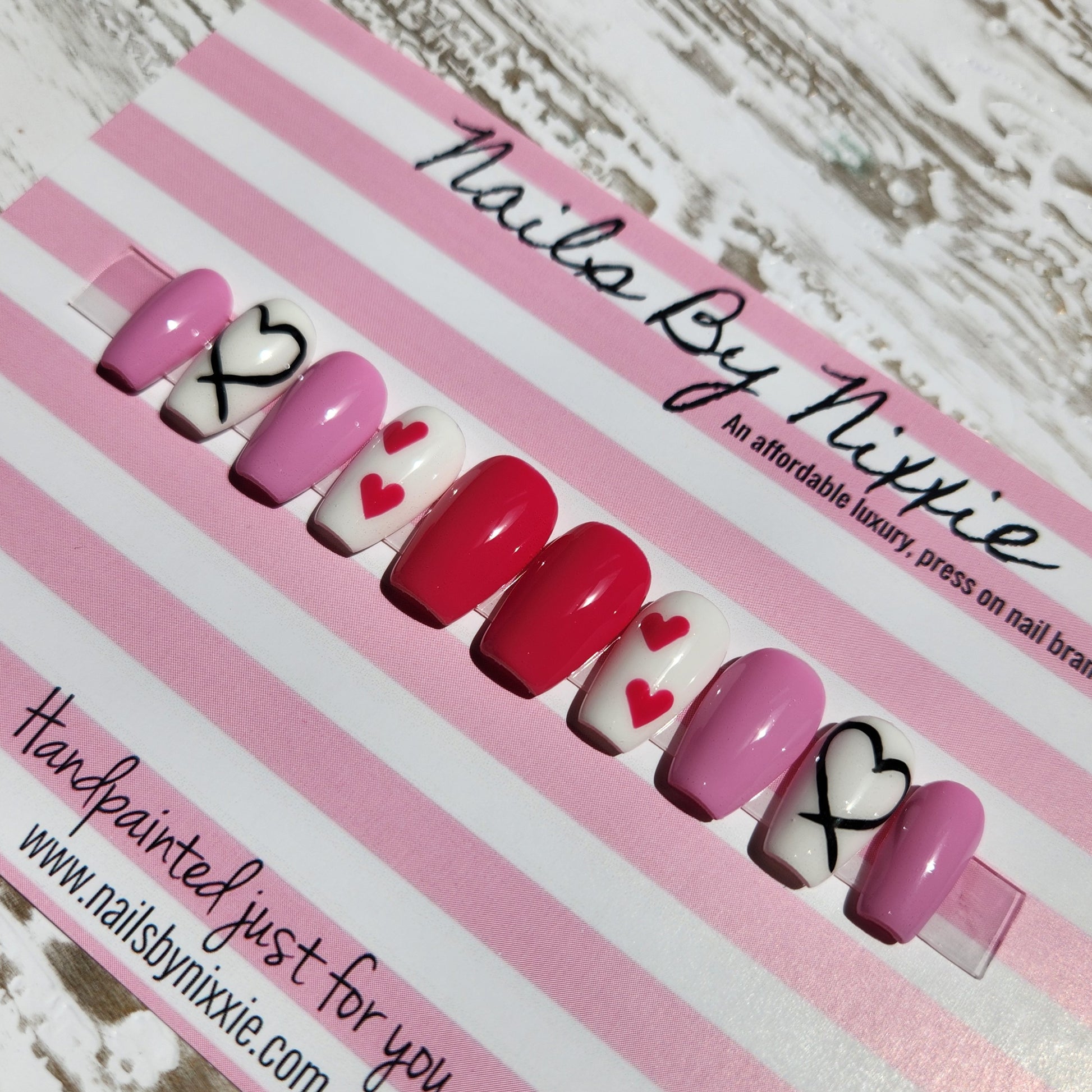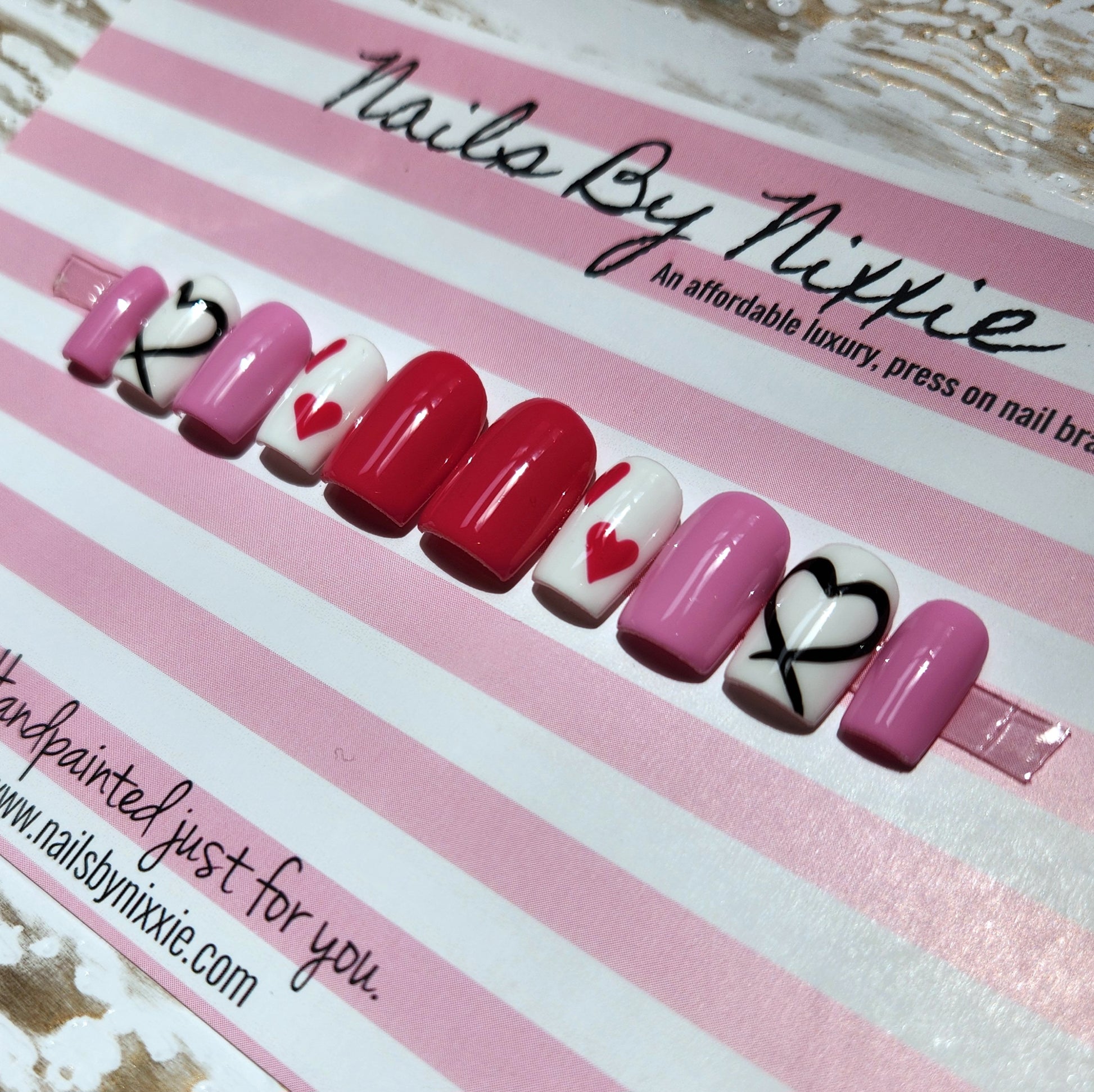 Each Made To Order Nail Set comes with 10 hand painted nails. Every order is supplied with a complimentary prep kit which includes, instructions, nail glue, nail file, cuticle pusher and alcohol wipes.