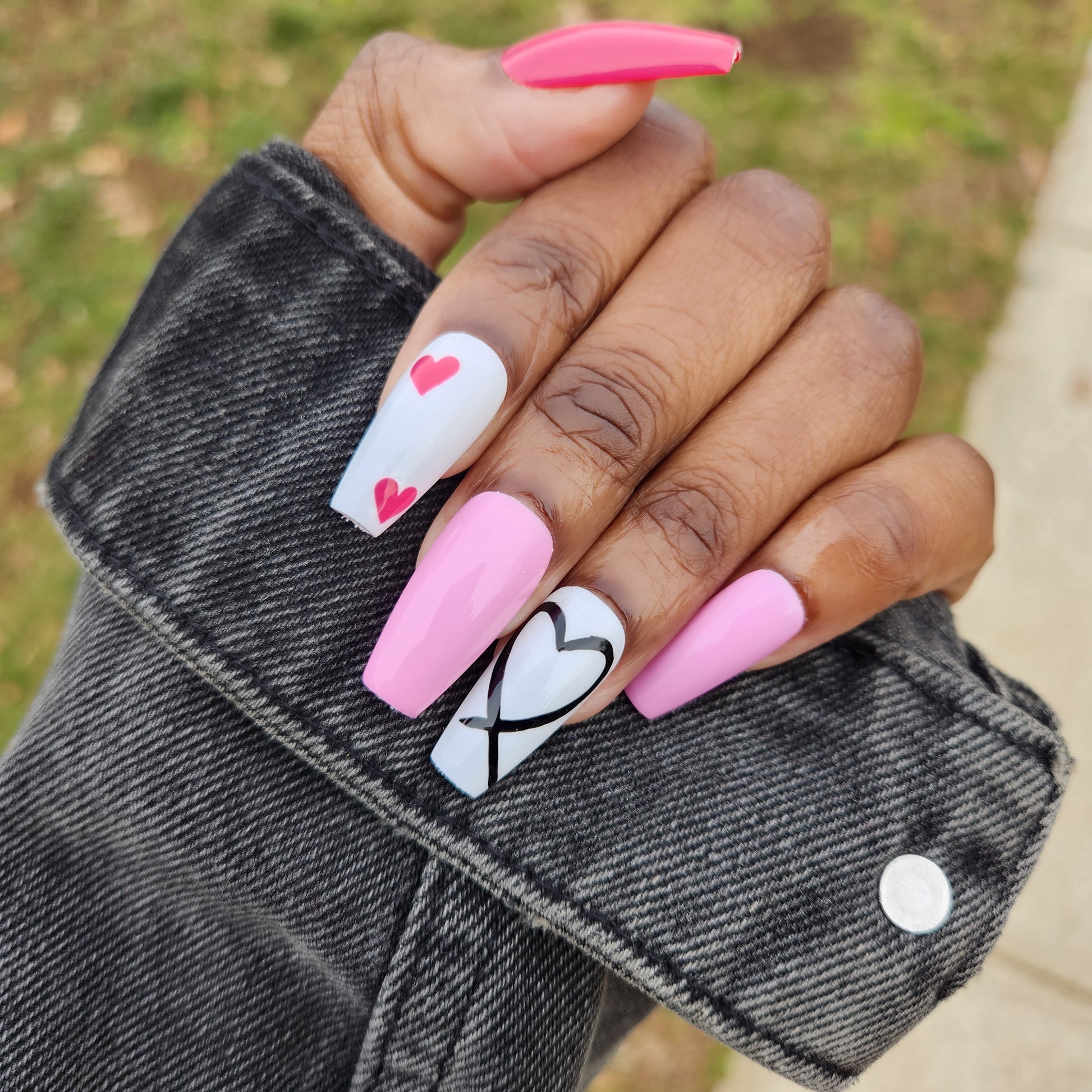 Have your nails done in this design in under 10 minutes with our long lasting, gel, press on nails. Choose your favorite length, shape and size and add this made to order nail set to cart!