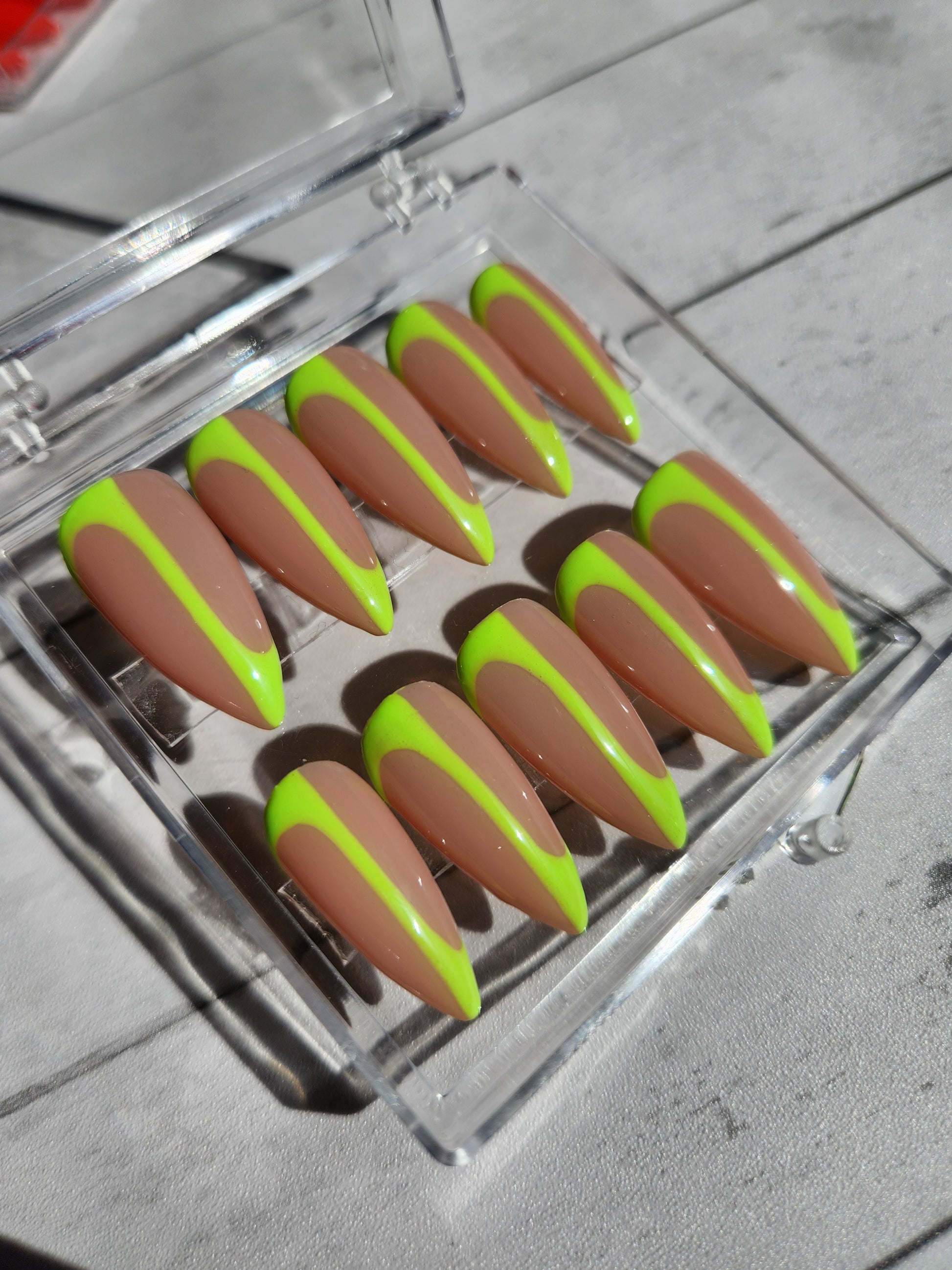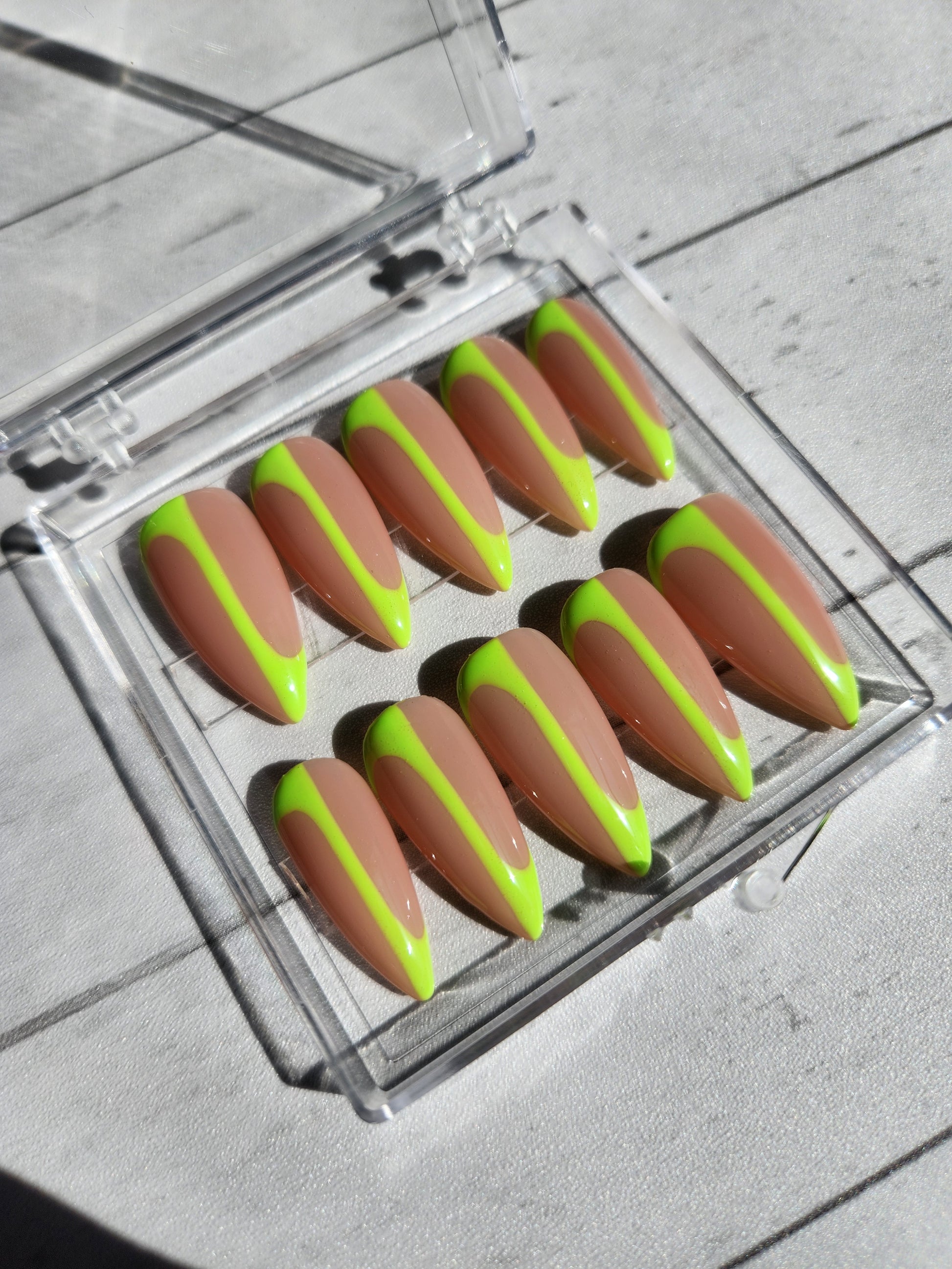 Have your nails done in this design in under 10 minutes with our long lasting, gel, press on nails. Choose your favorite length, shape and size and add this made to order nail set to cart!