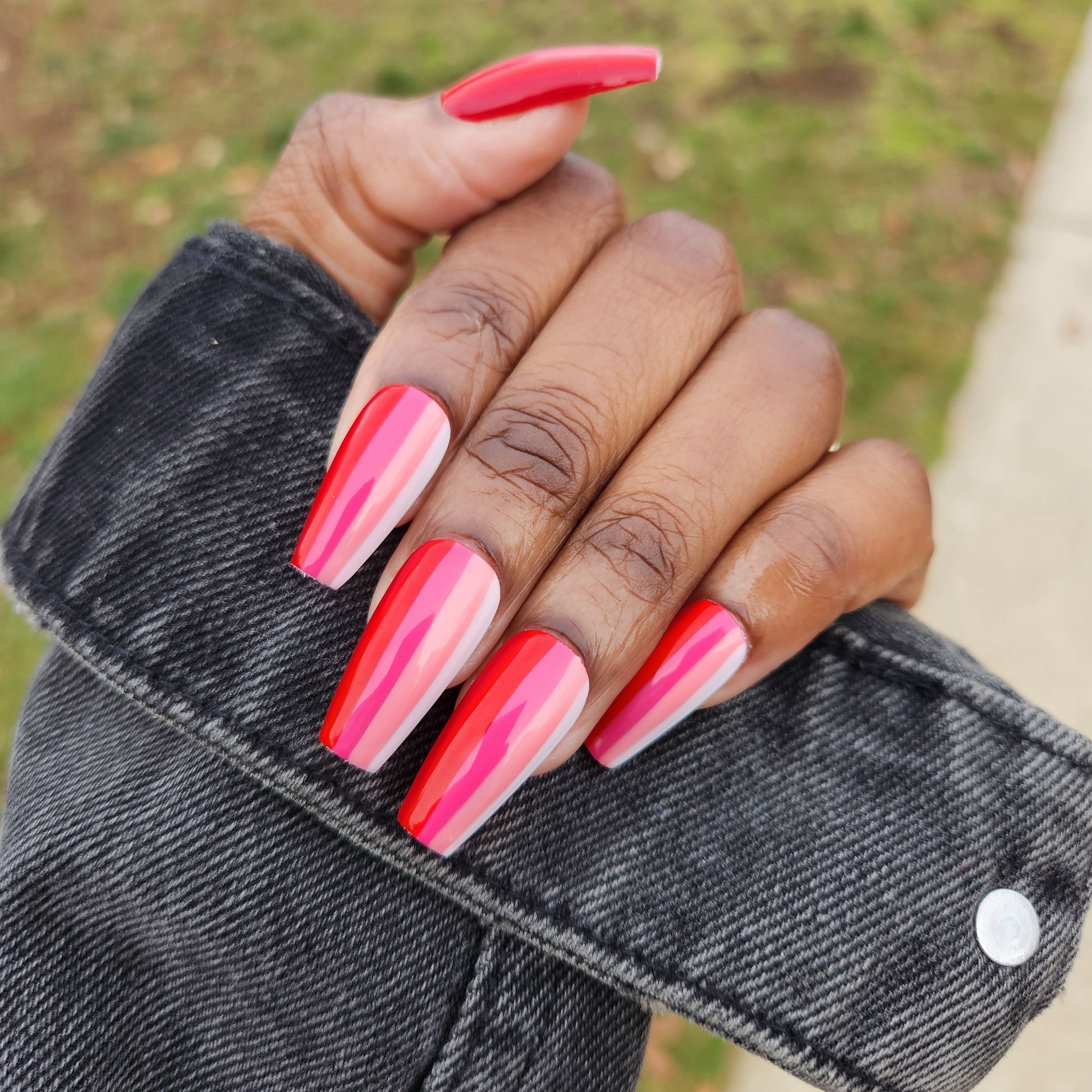 Have your nails done in this design in under 10 minutes with our long lasting, gel, press on nails. Choose your favorite length, shape and size and add this made to order nail set to cart!