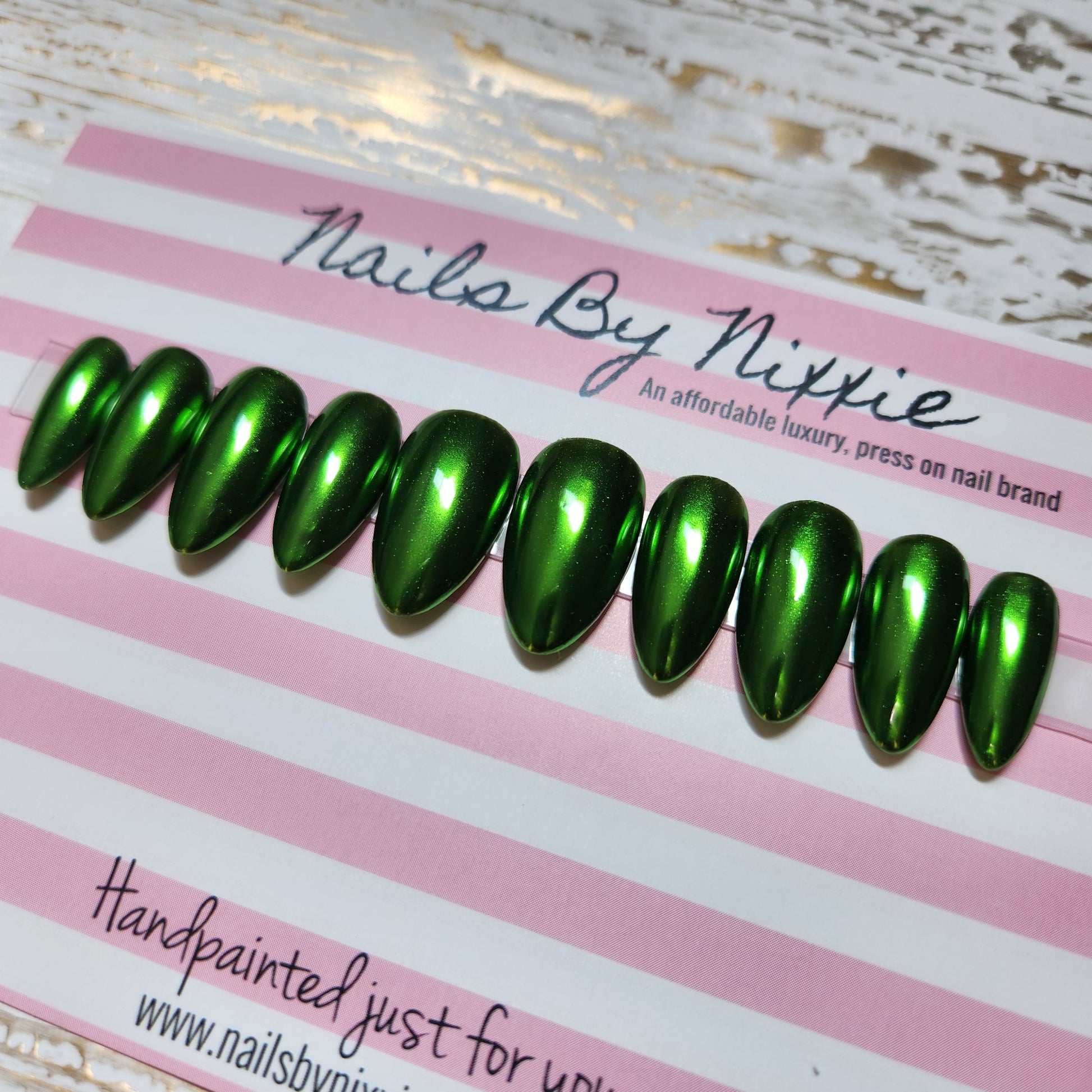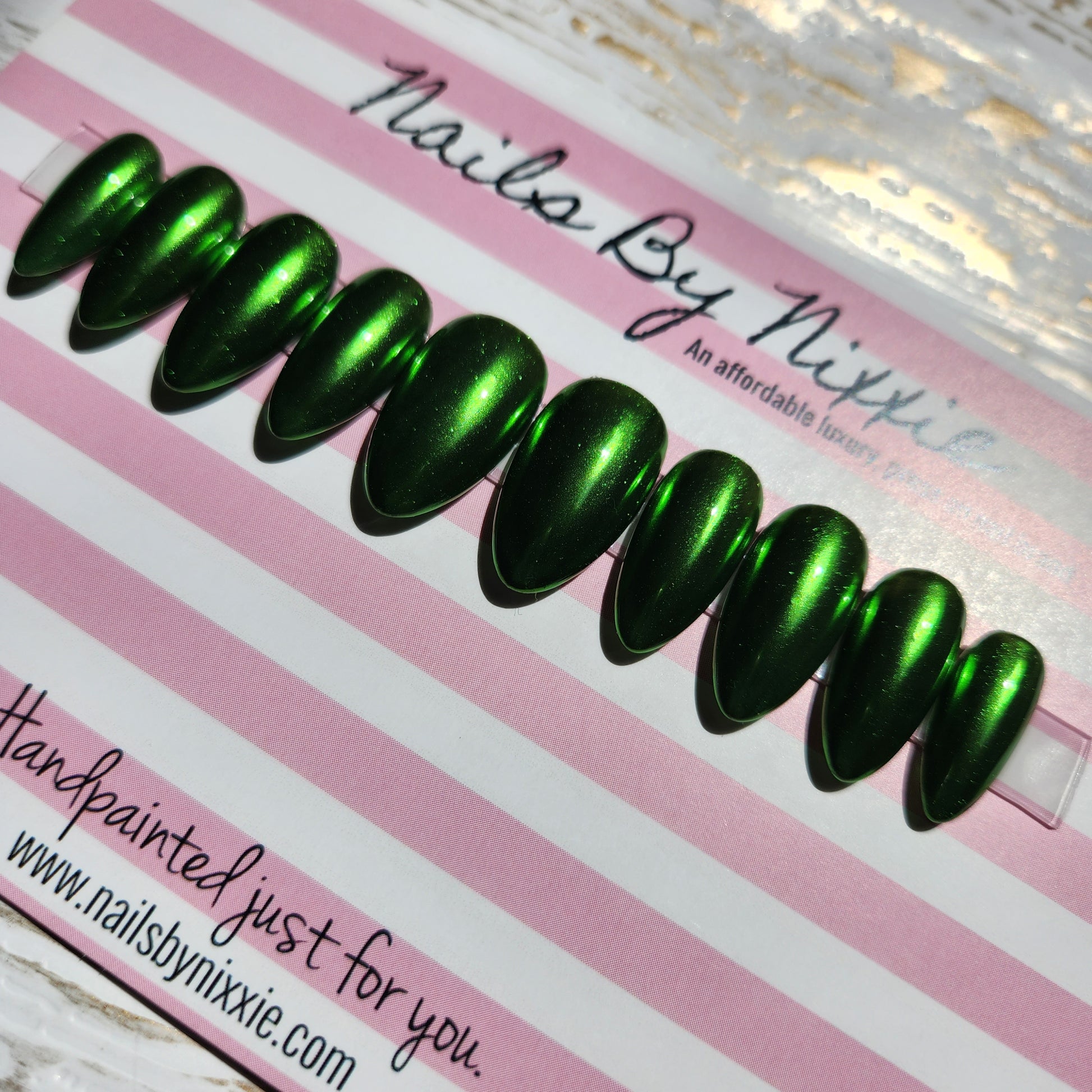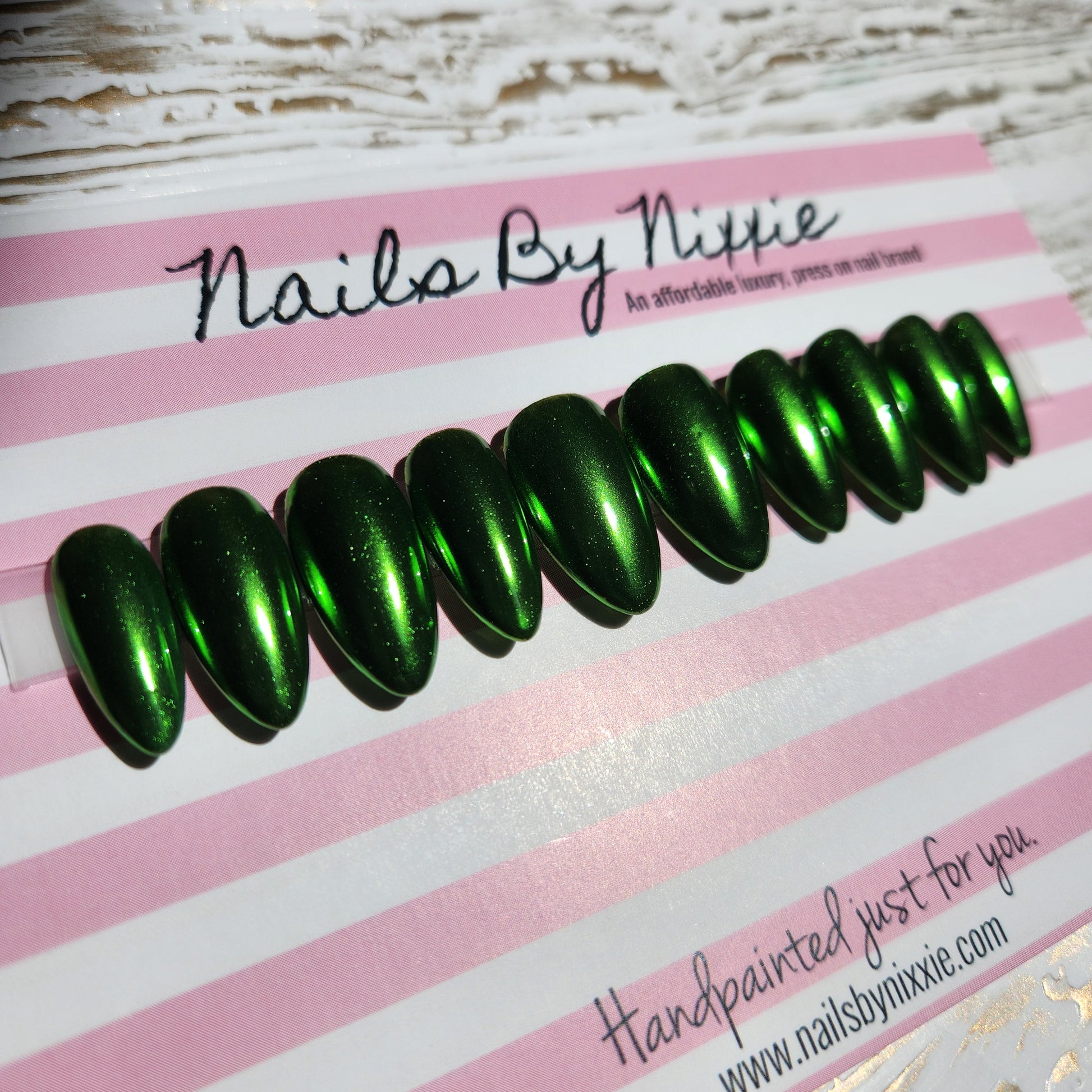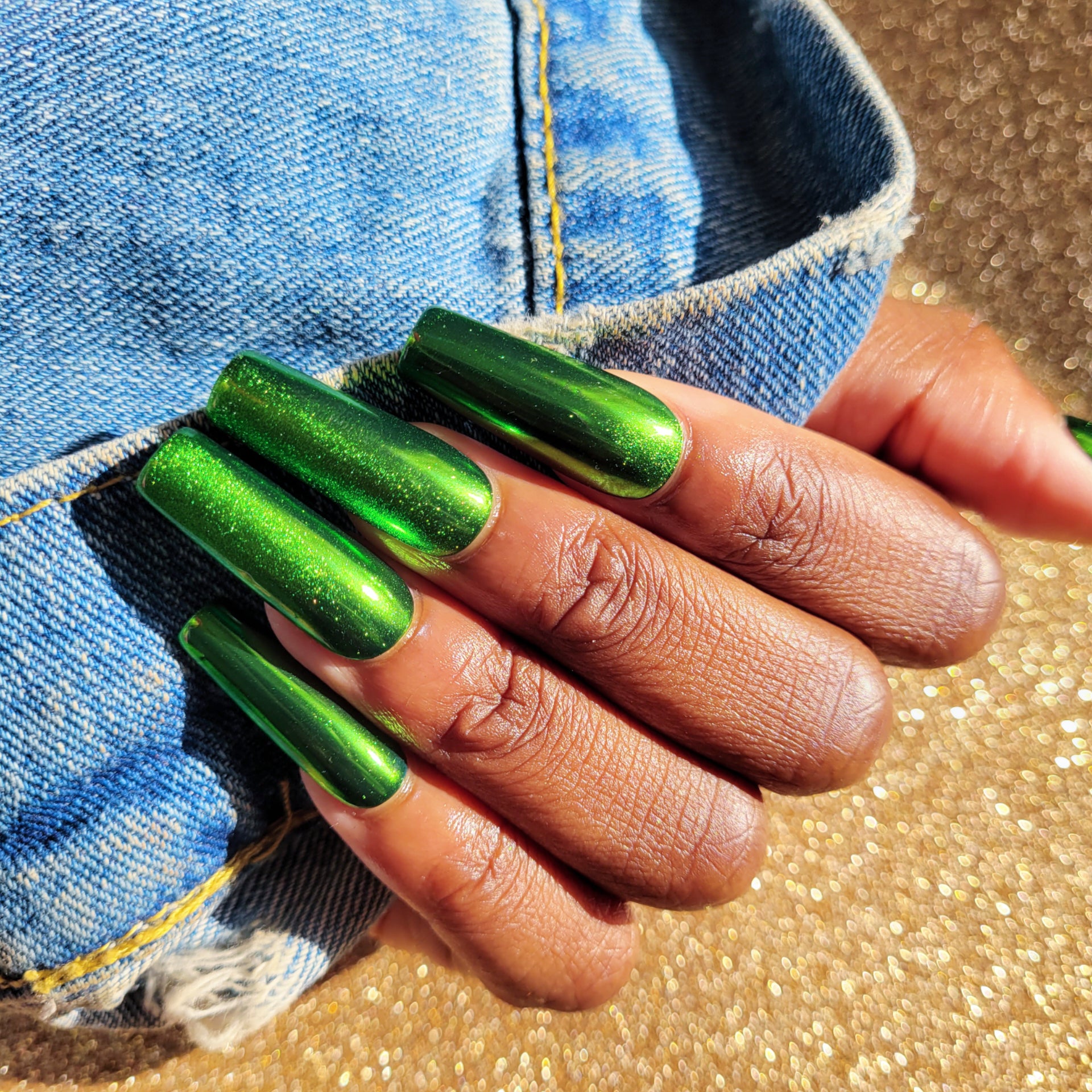 Metallic green nail set. A