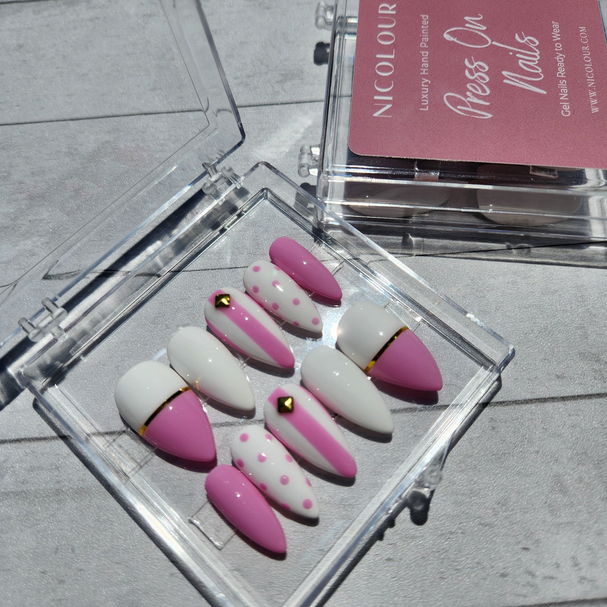 Have your nails done in this design in under 10 minutes with our long lasting, gel, press on nails. Choose your favorite length, shape and size and add this made to order nail set to cart!