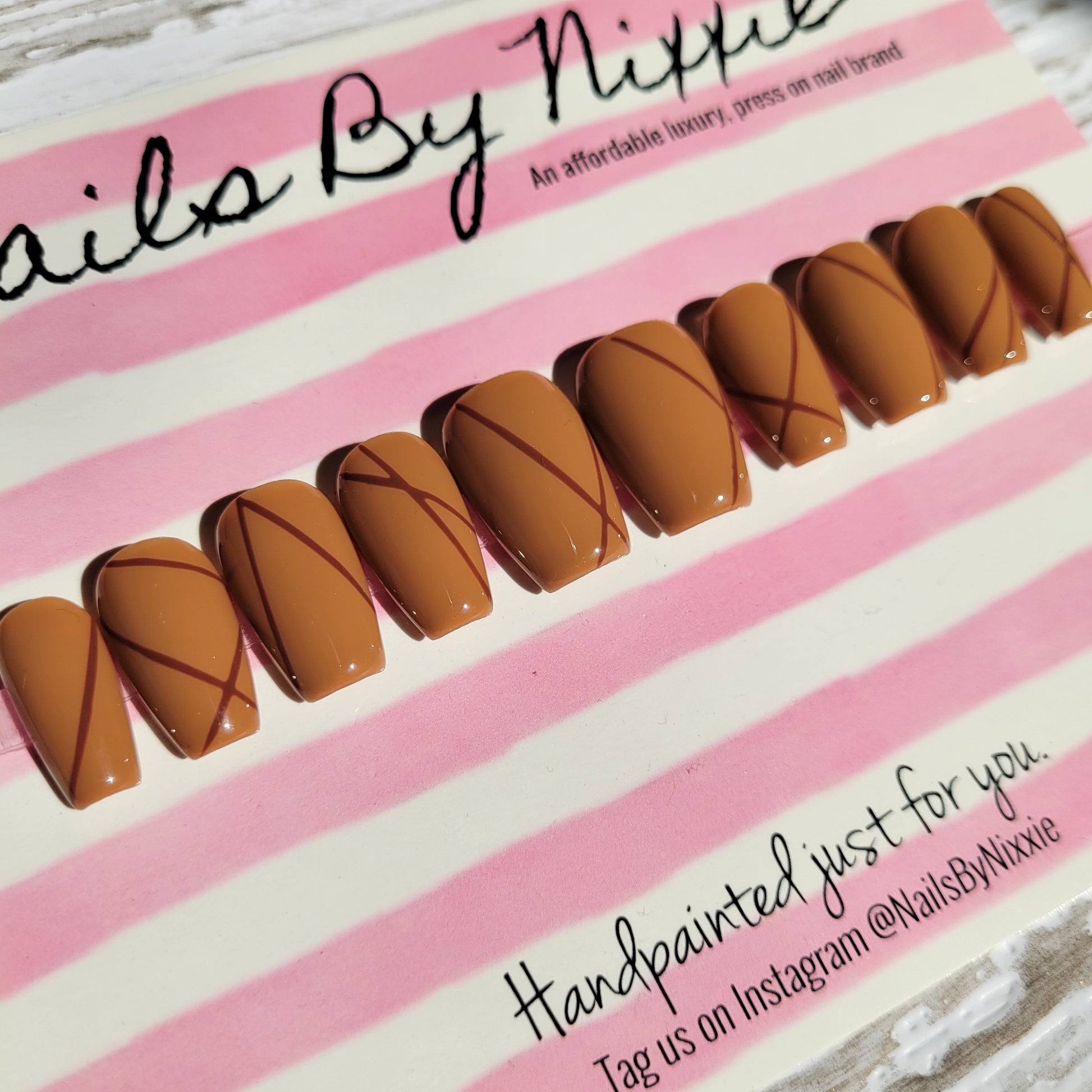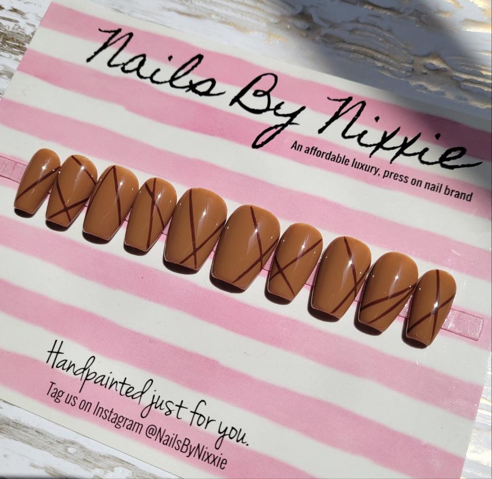 Have your nails done in this design in under 10 minutes with our long lasting, gel, press on nails. Choose your favorite length, shape and size and add this made to order nail set to cart!