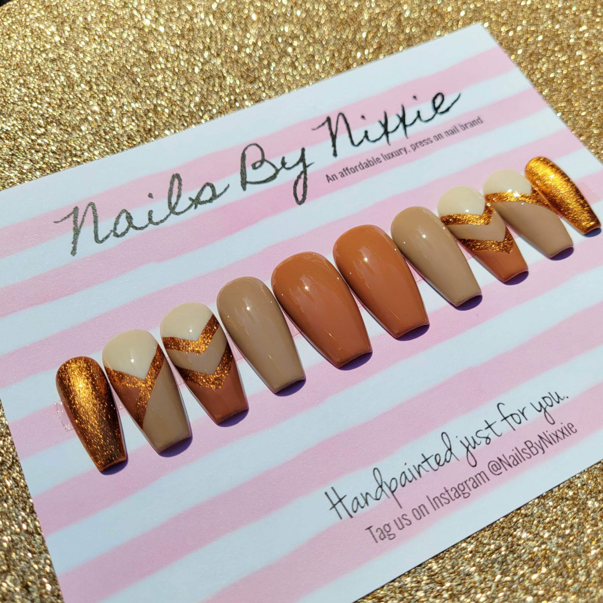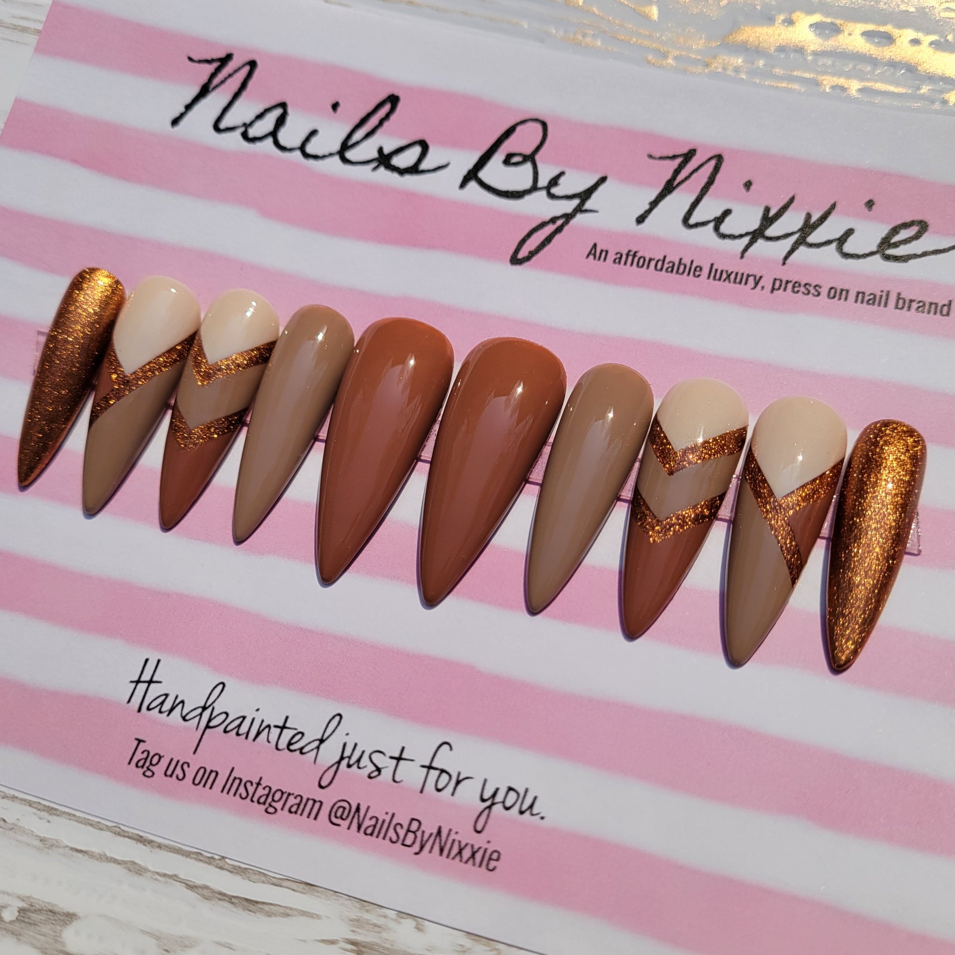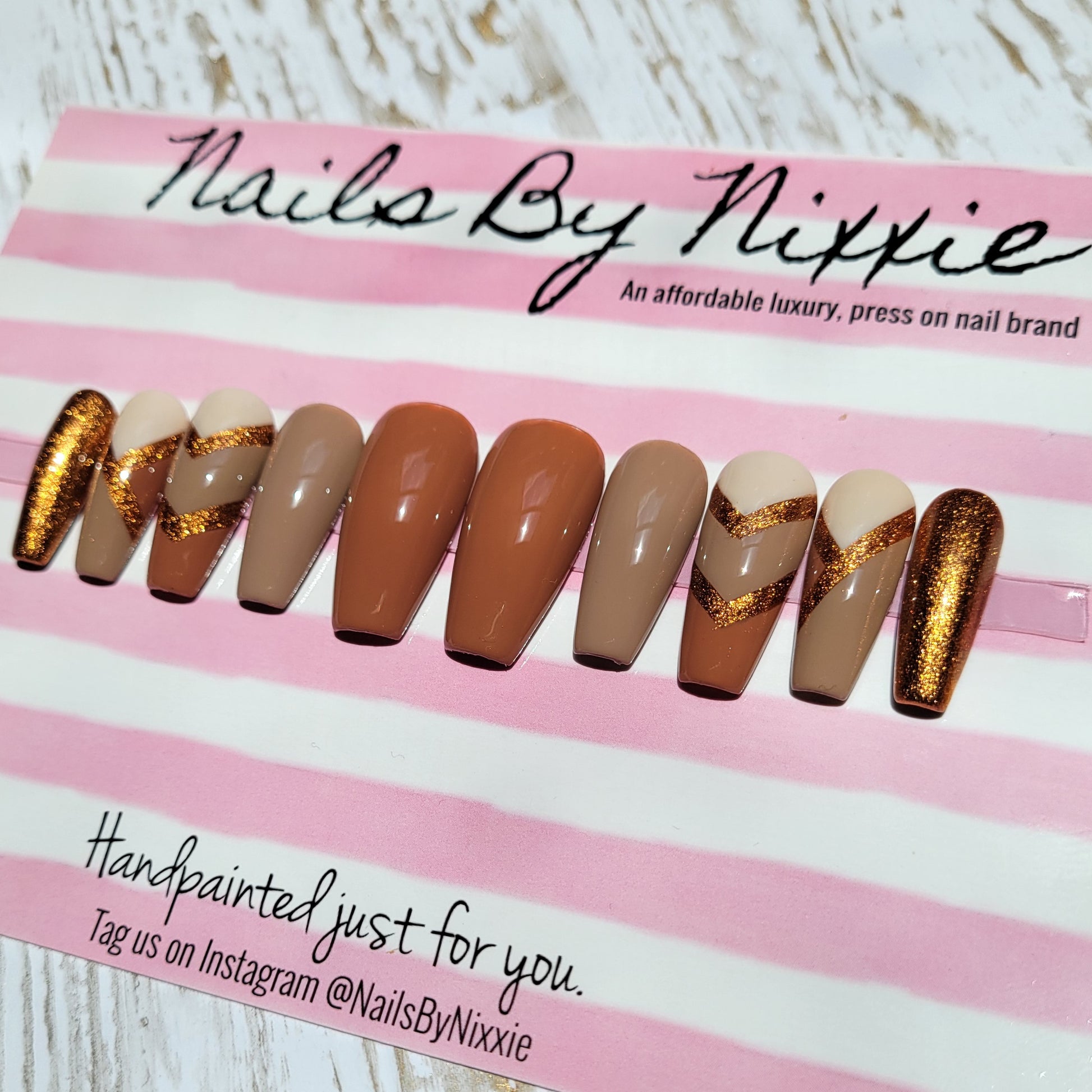 Have your nails done in this design in under 10 minutes with our long lasting, gel, press on nails. Choose your favorite length, shape and size and add this made to order nail set to cart!