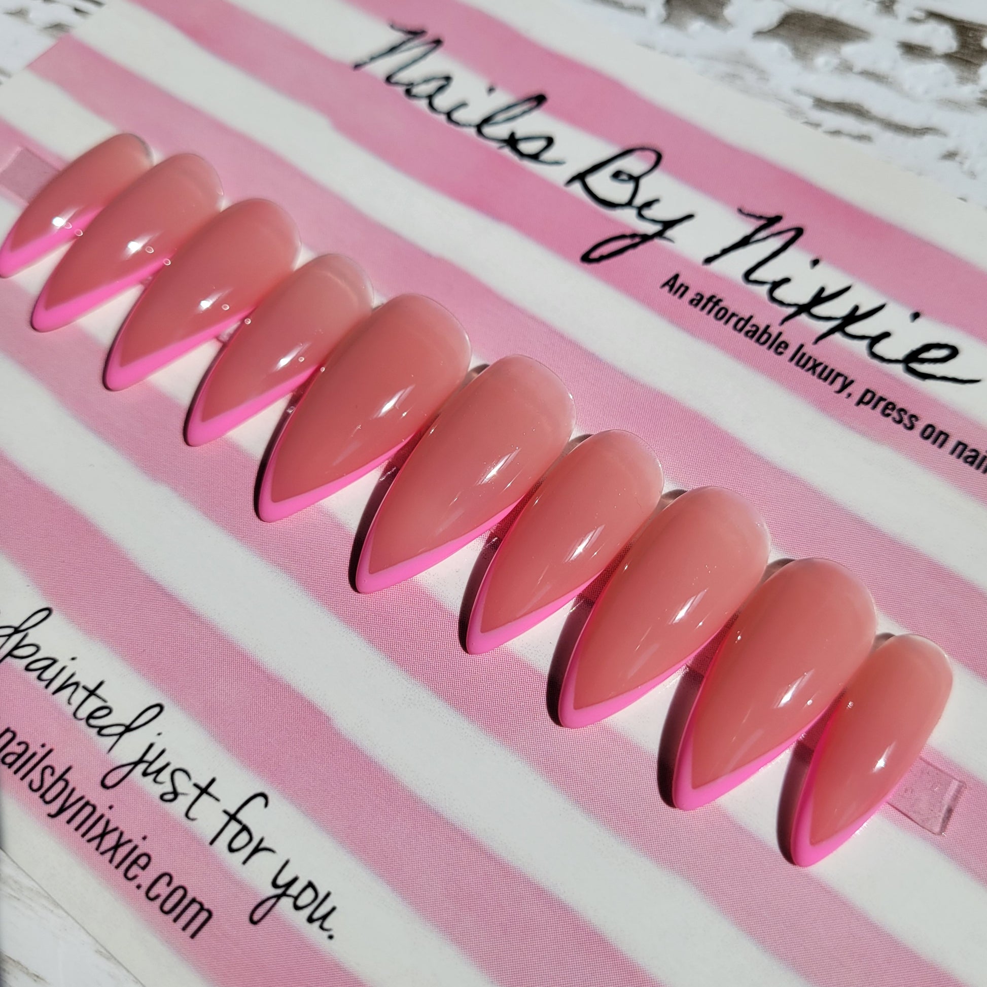 Have your nails done in this design in under 10 minutes with our long lasting, gel, press on nails. Choose your favorite length, shape and size and add this made to order nail set to cart!