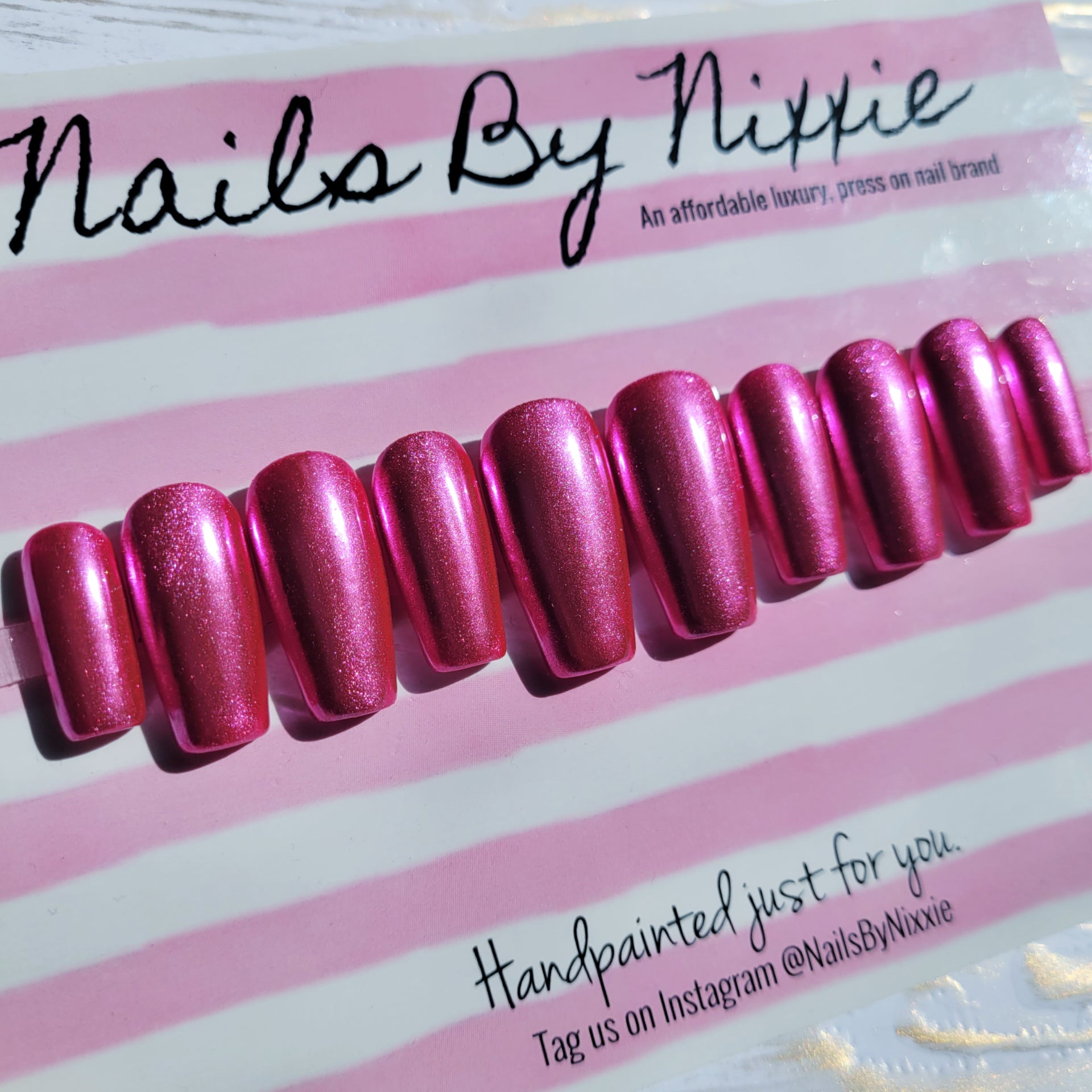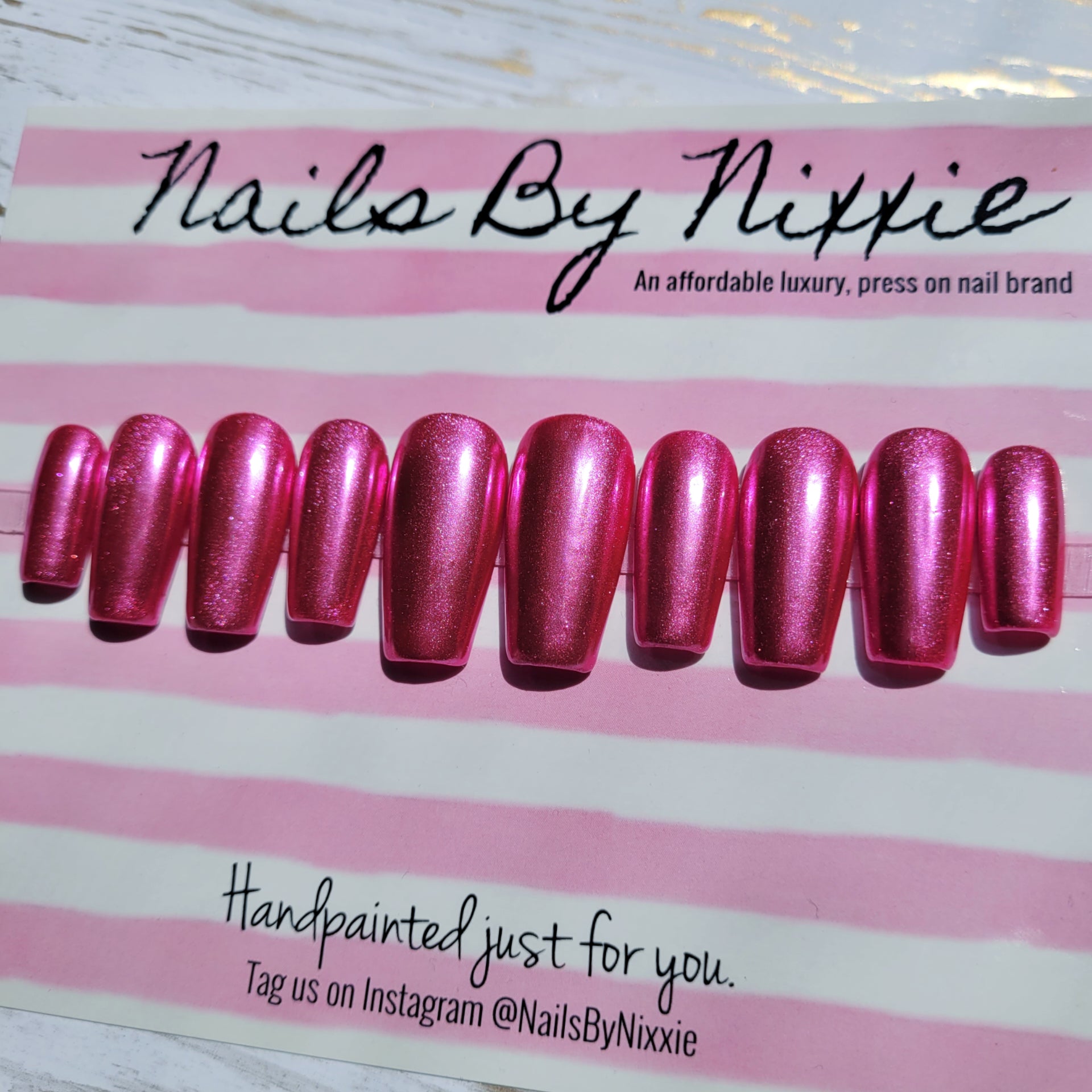 Have your nails done in this design in under 10 minutes with our long lasting, gel, press on nails. Choose your favorite length, shape and size and add this made to order nail set to cart!
