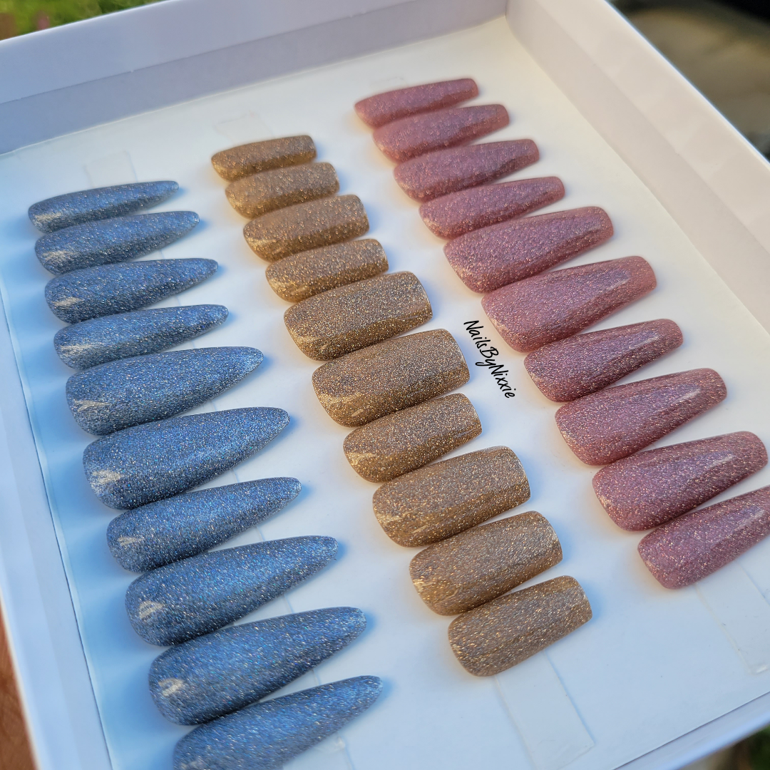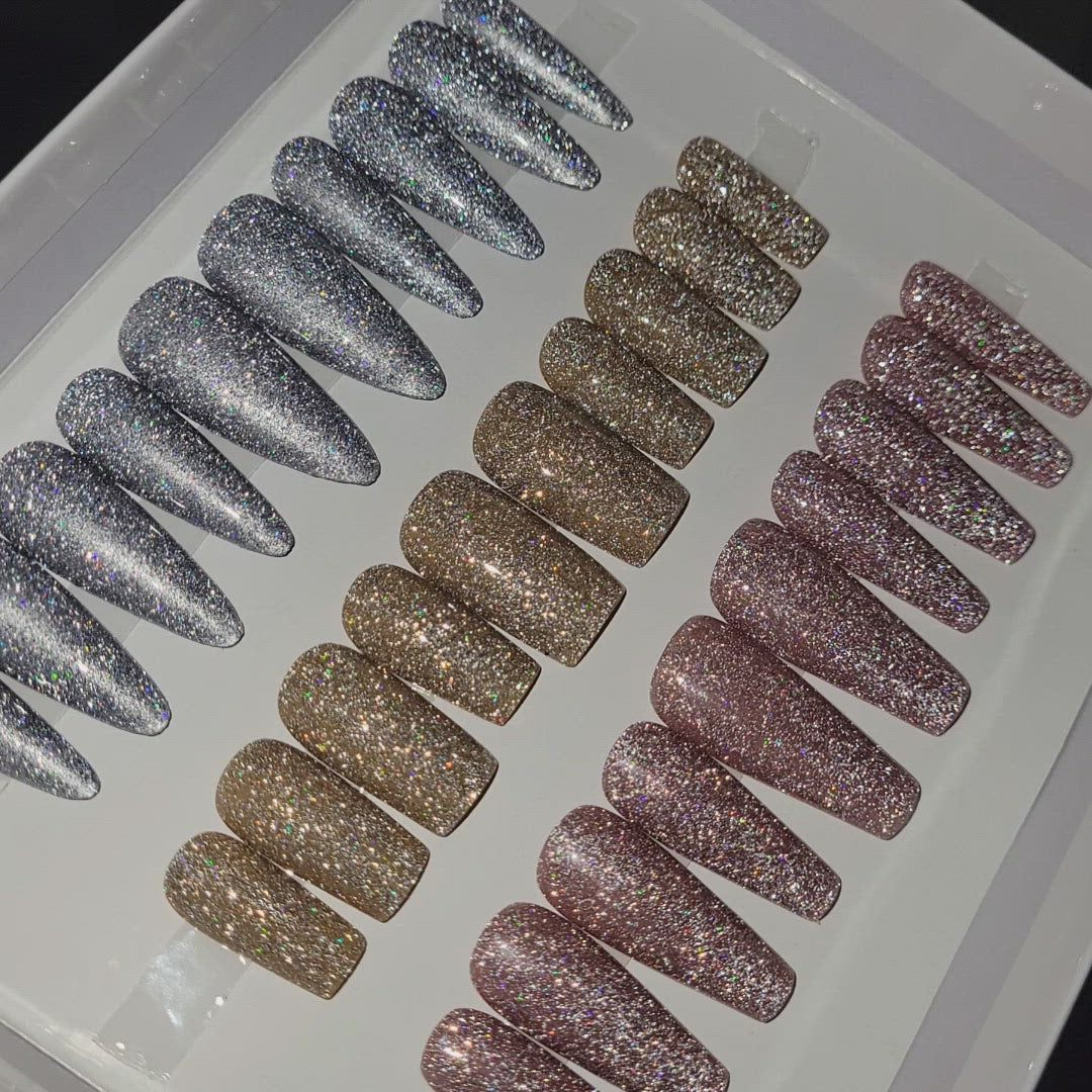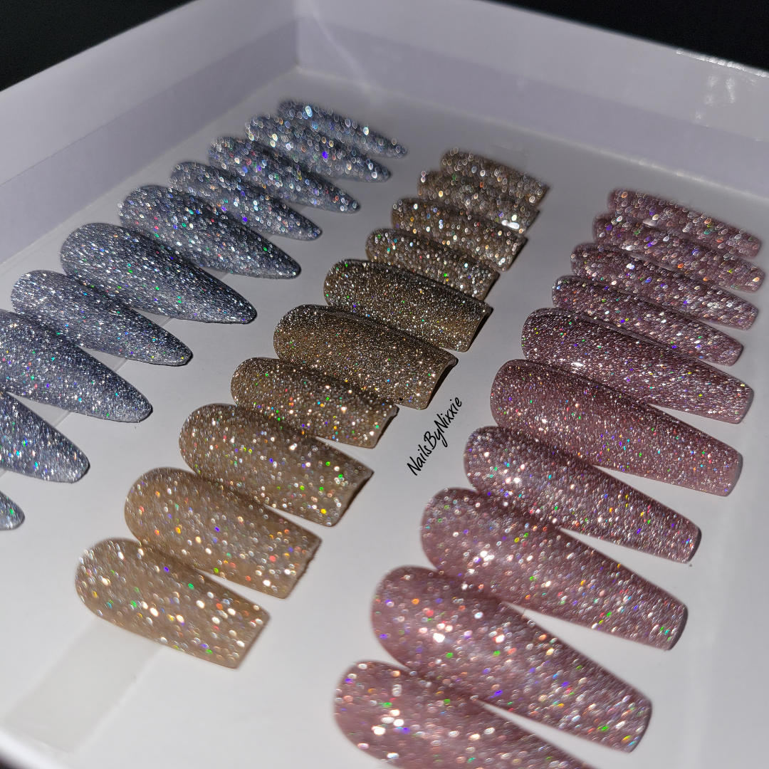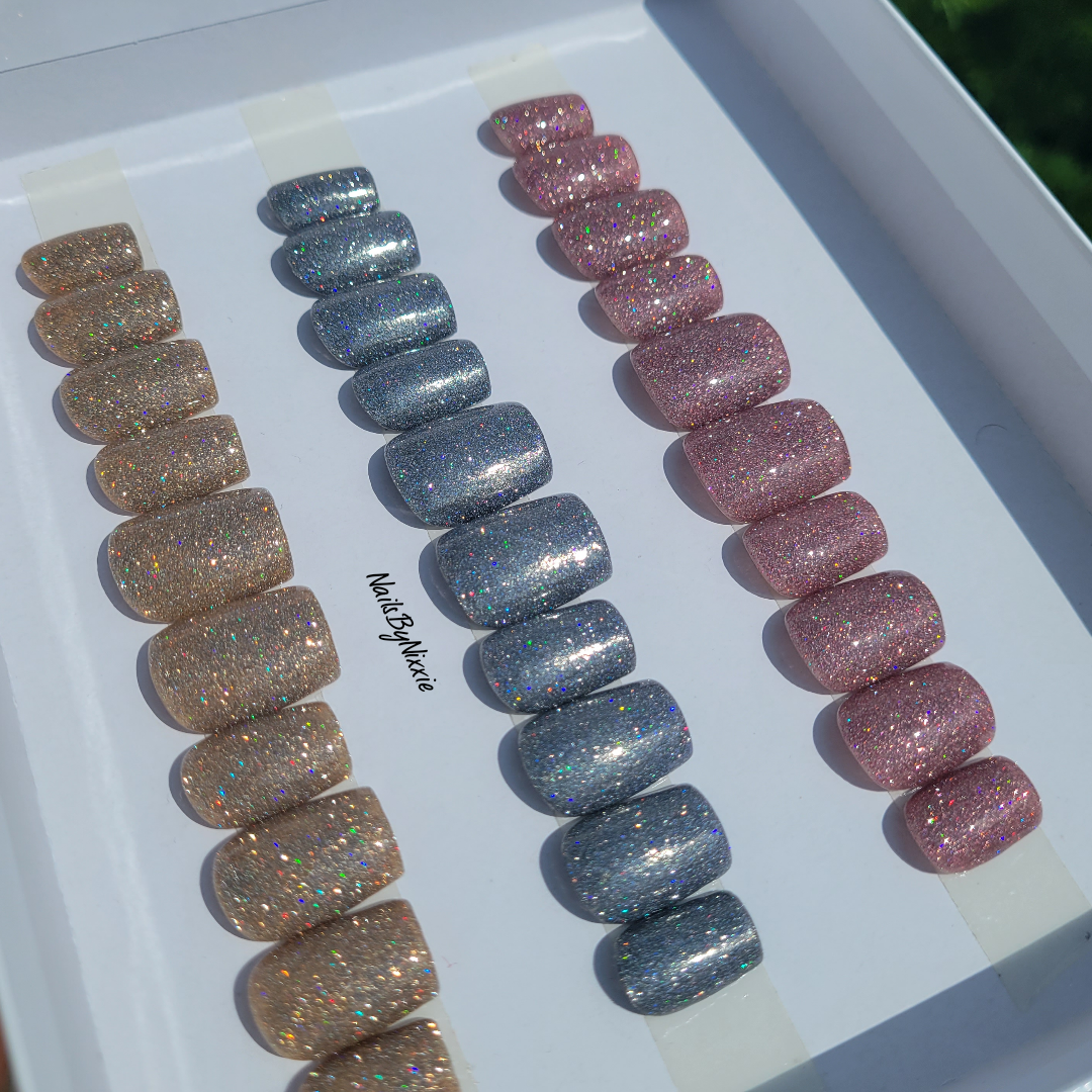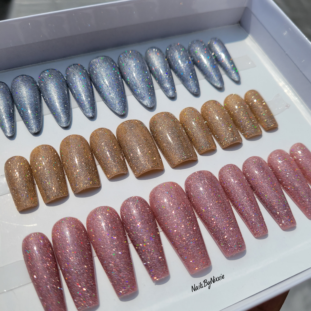 Bundle and save with the Shimmer & Shine Collection. This reflective glitter gel nail set collection is stunning during the day and night.