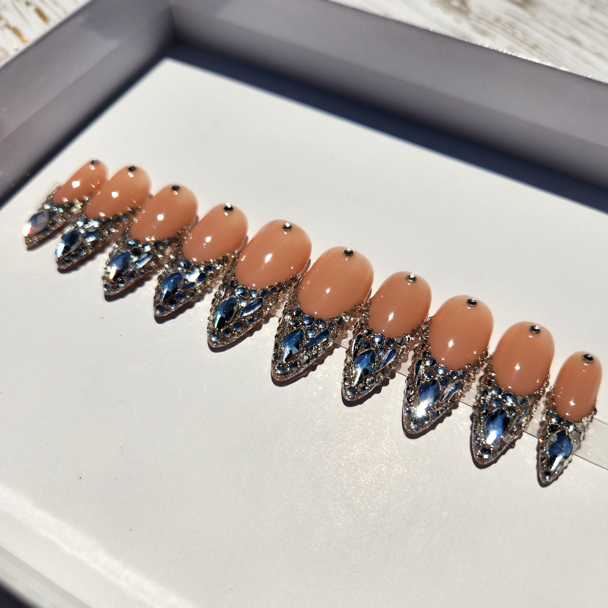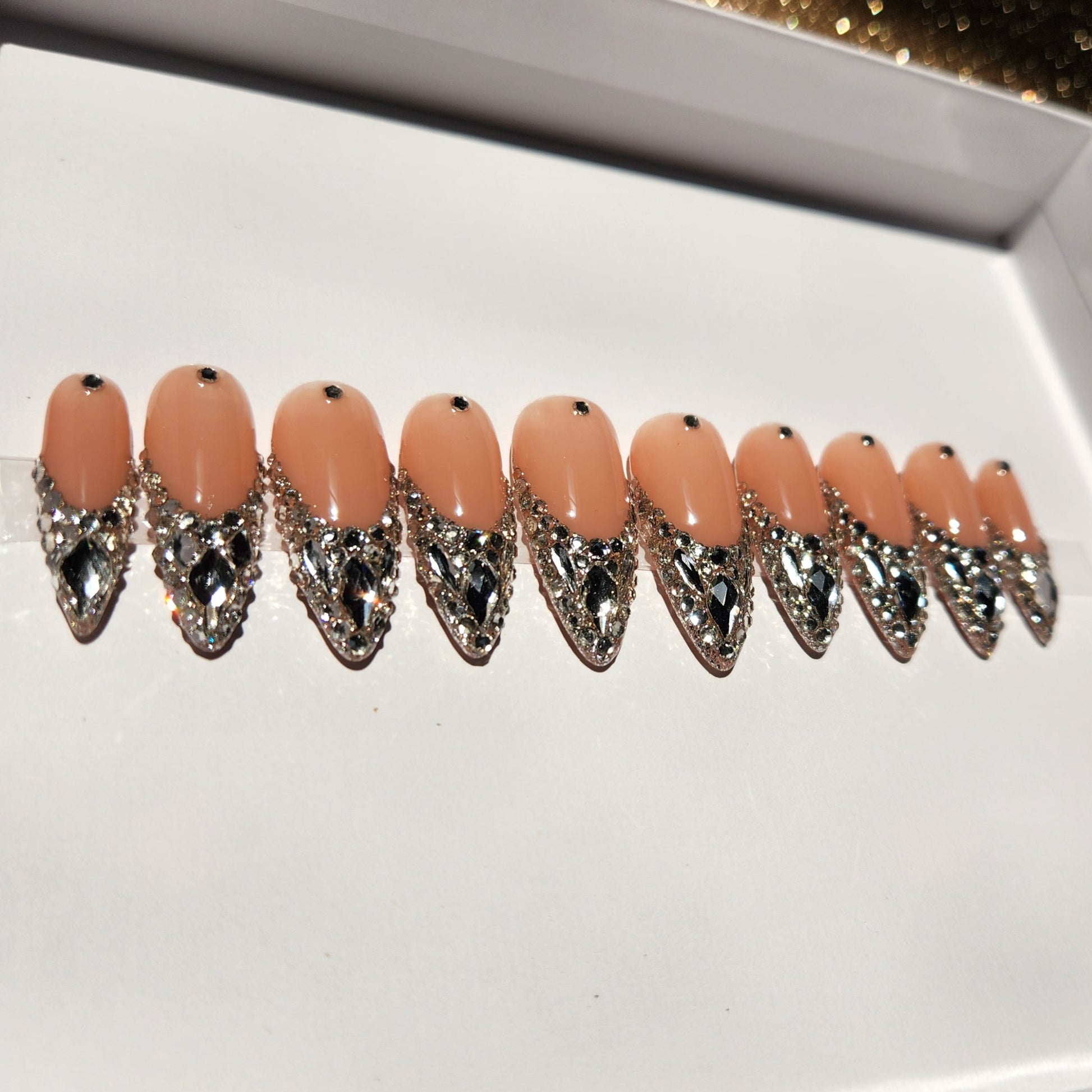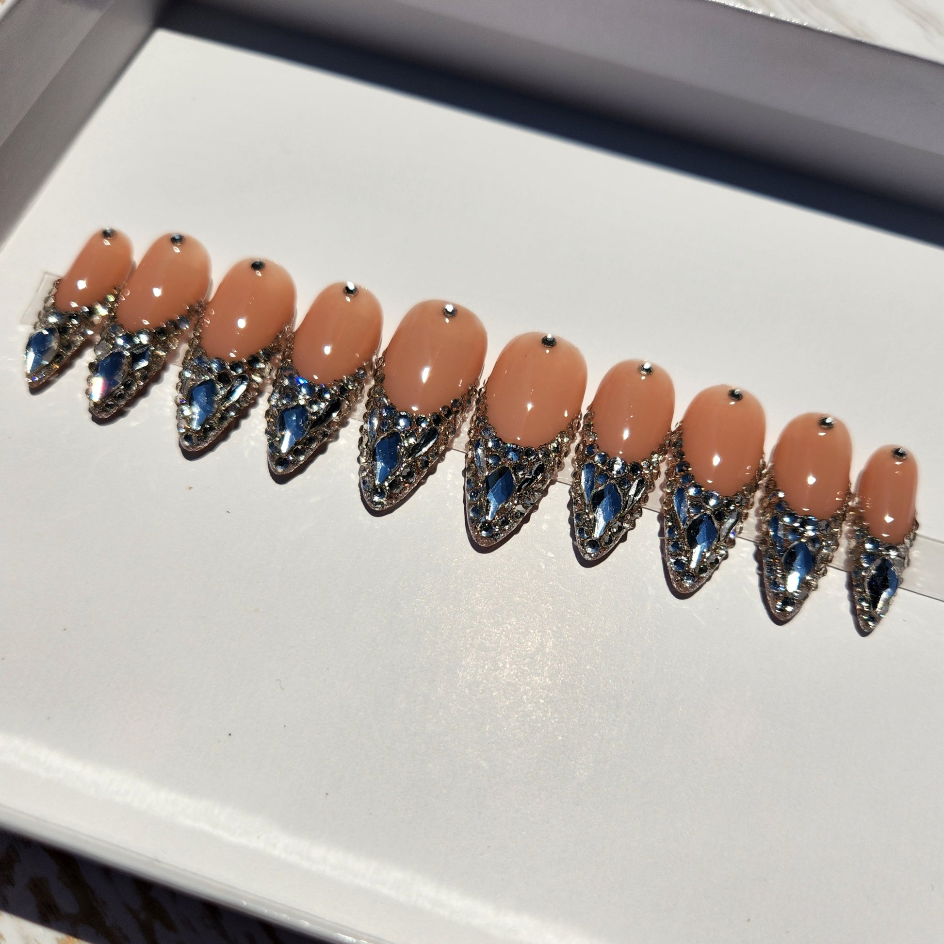 French tip blinged out nail set with flawless, high quality Serenity crystals. Perfect for NYE, birthday celebration, or a night out.
