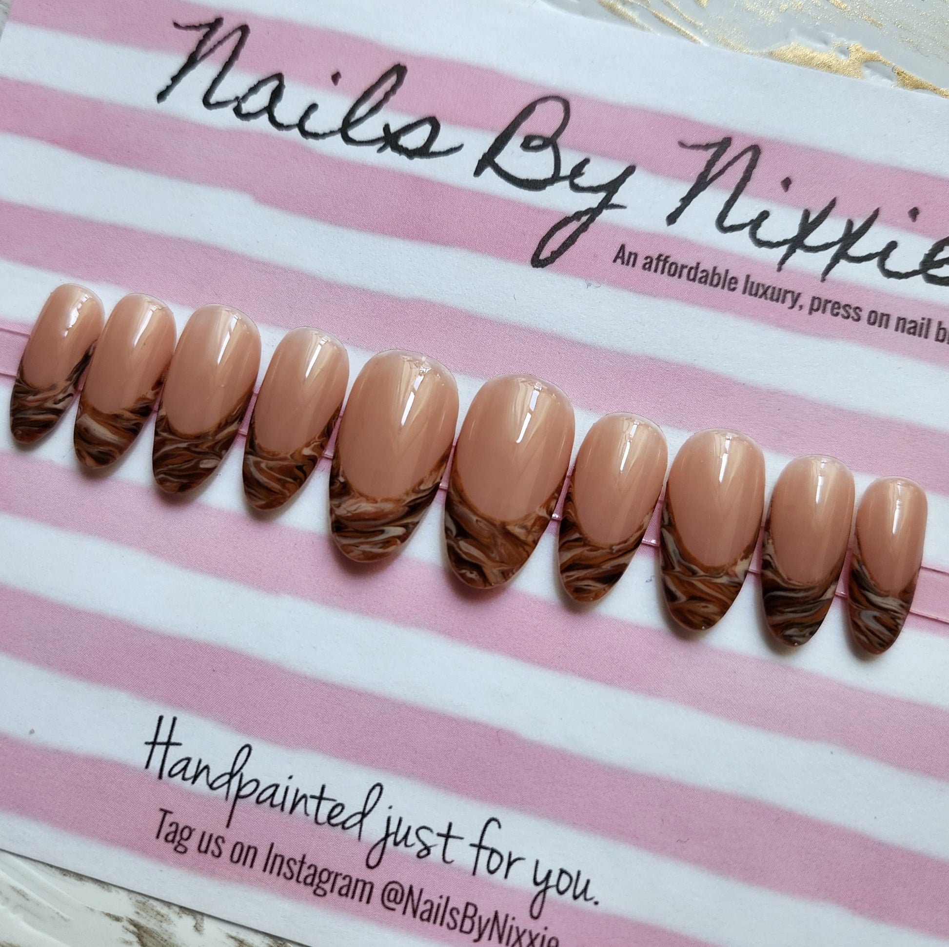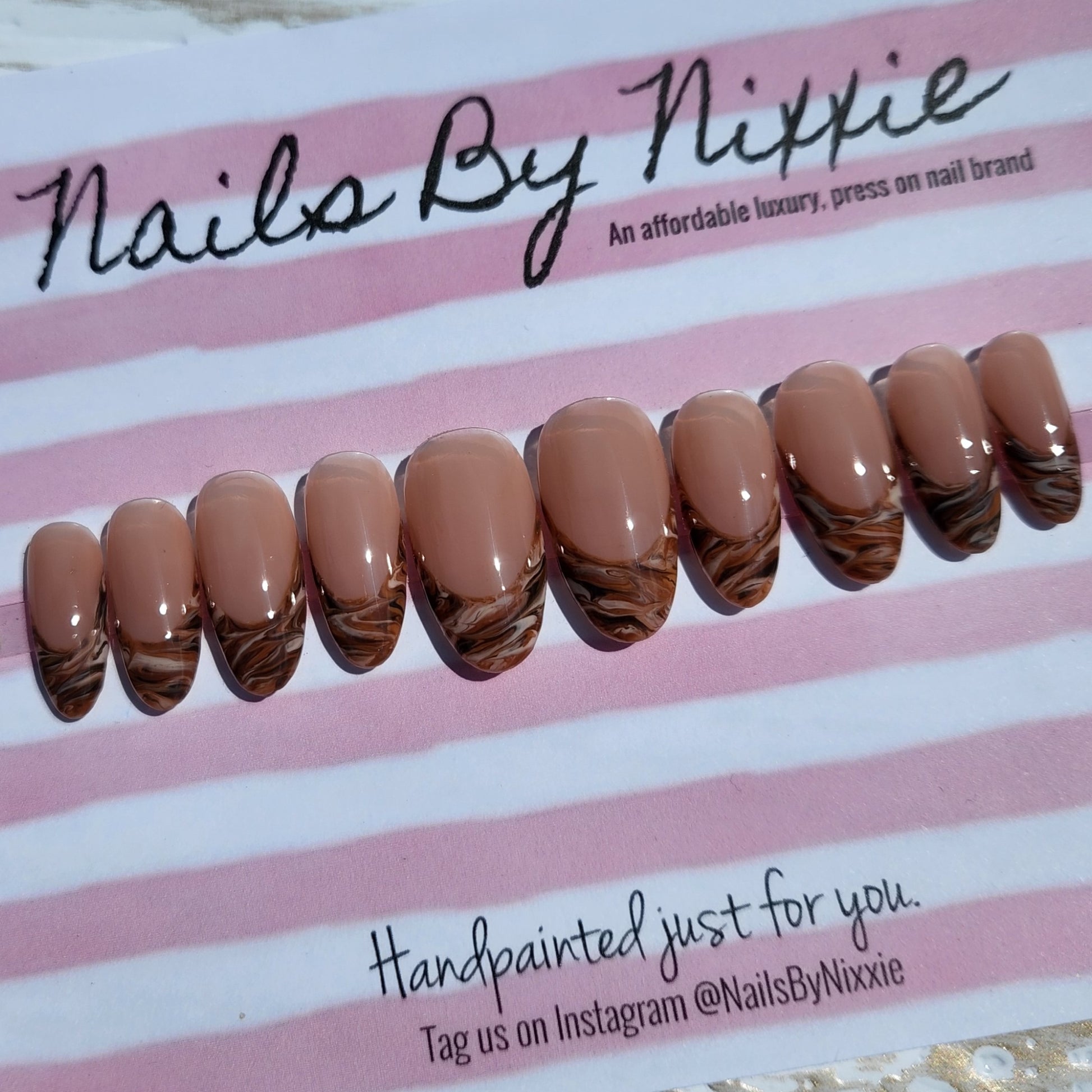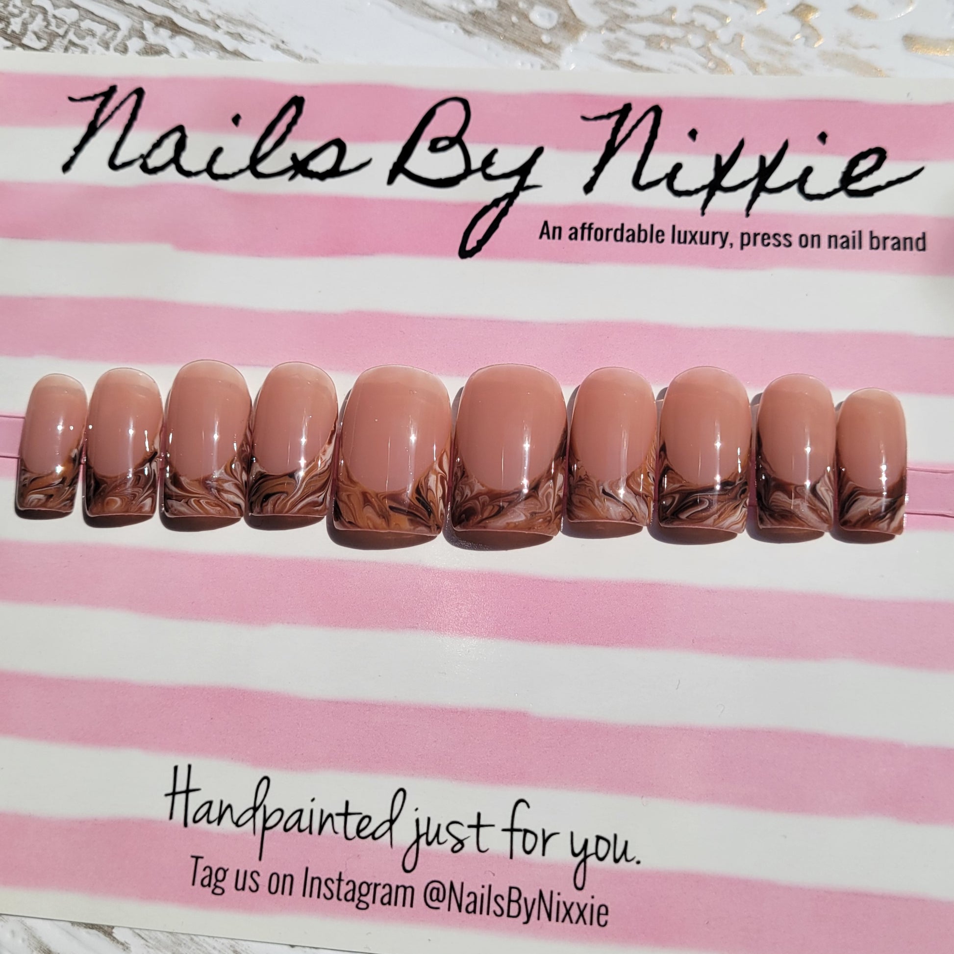 Have your nails done in this design in under 10 minutes with our long lasting, gel, press on nails. Choose your favorite length, shape and size and add this made to order nail set to cart!