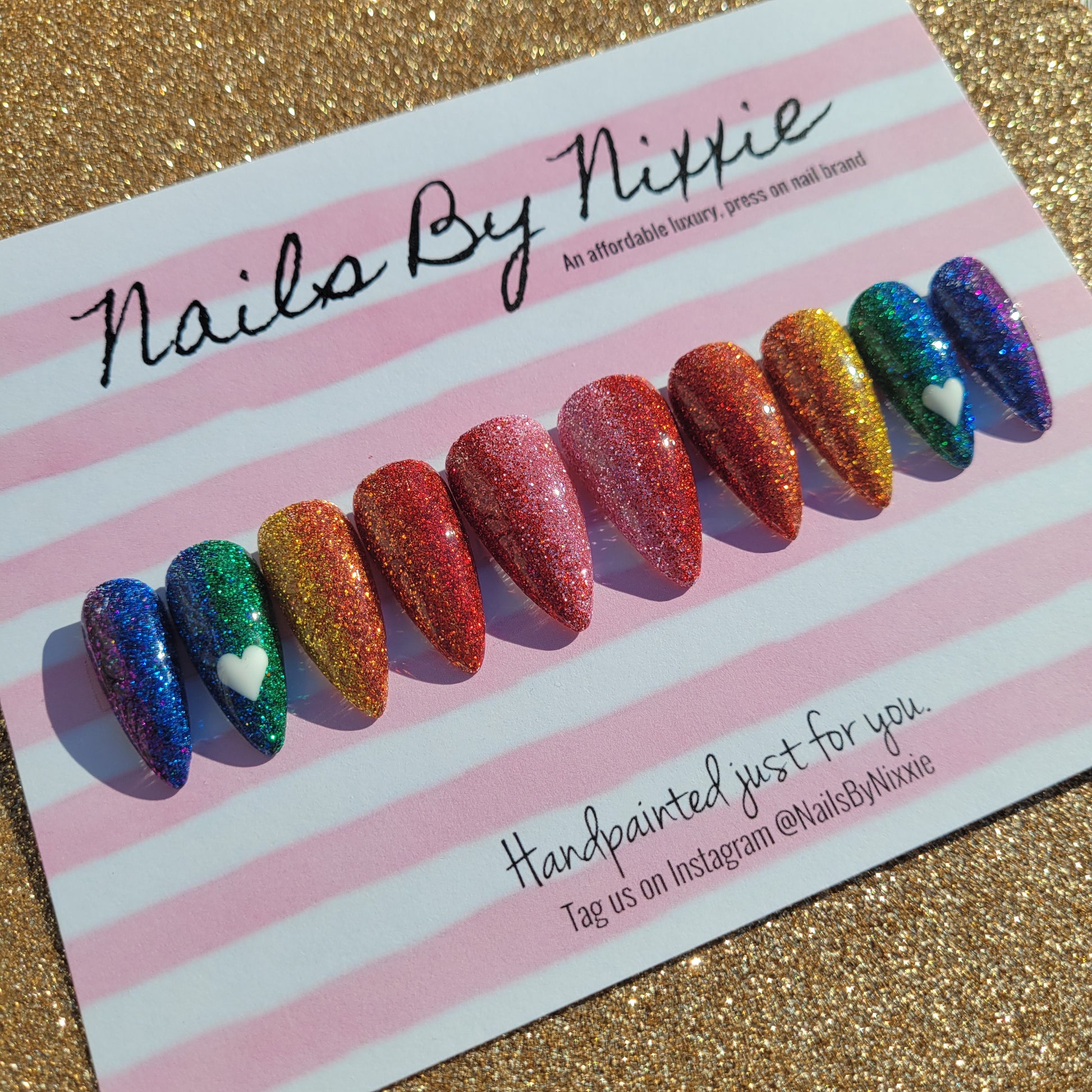 Have your nails done in this design in under 10 minutes with our long lasting, gel, press on nails. Choose your favorite length, shape and size and add this made to order nail set to cart!