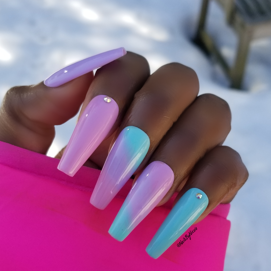 This perfect combination of turquoise, lilac and pink tones will have you all set for spring. Pictured in long coffin.